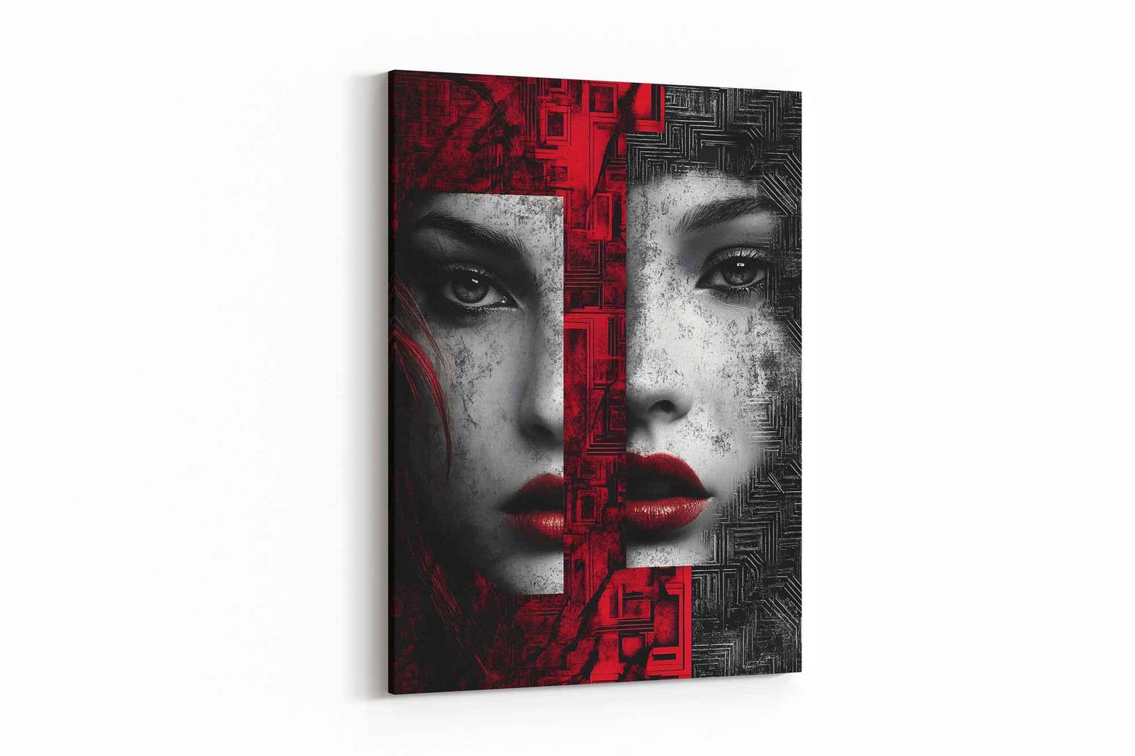 Abstract Fragmented Face Canvas Print – Red & Black Grunge Geometric Canvas Wall Art Print