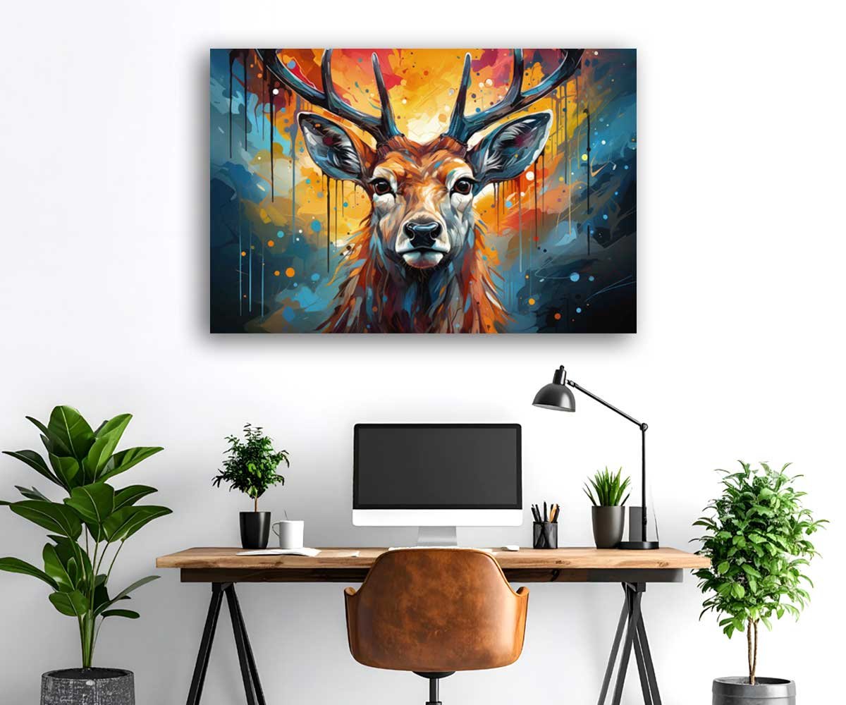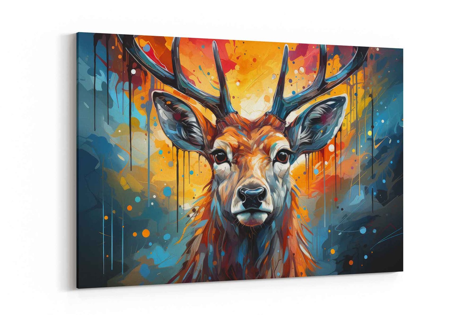Abstract Stag Canvas Print – Modern Graffiti Paint Splash Deer Wall Art