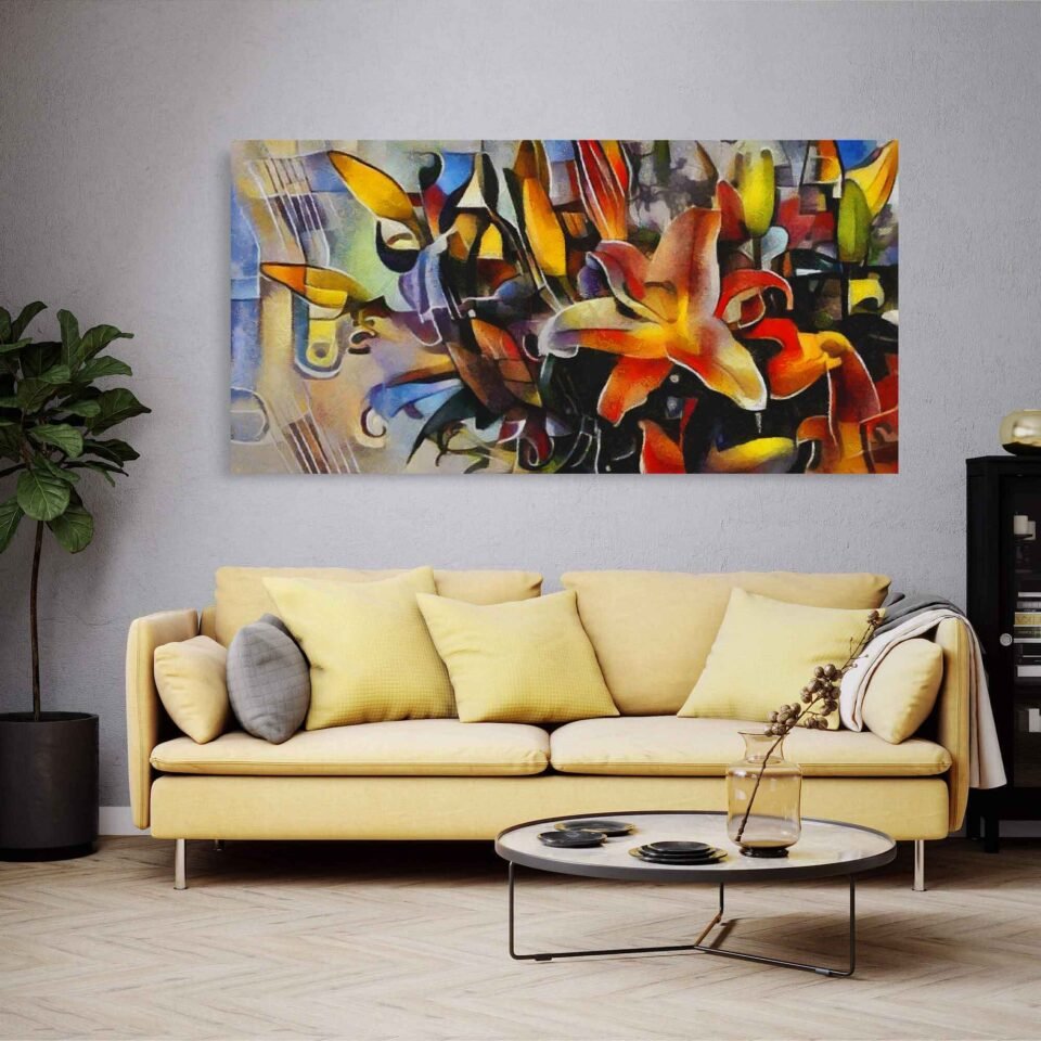 It’s striking composition and vibrant colors add a touch of contemporary elegance and creative expression to any interior. Let this remarkable artwork become a cherished addition to your decor, inspiring artistic appreciation and encouraging a fresh perspective on the beauty of flowers.