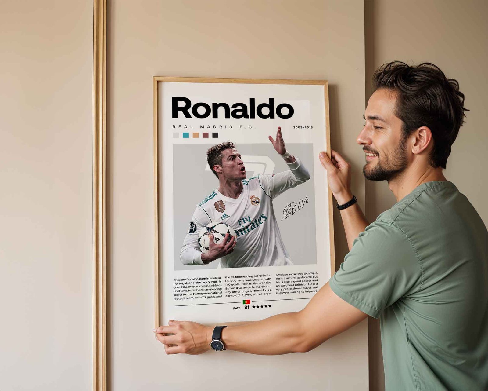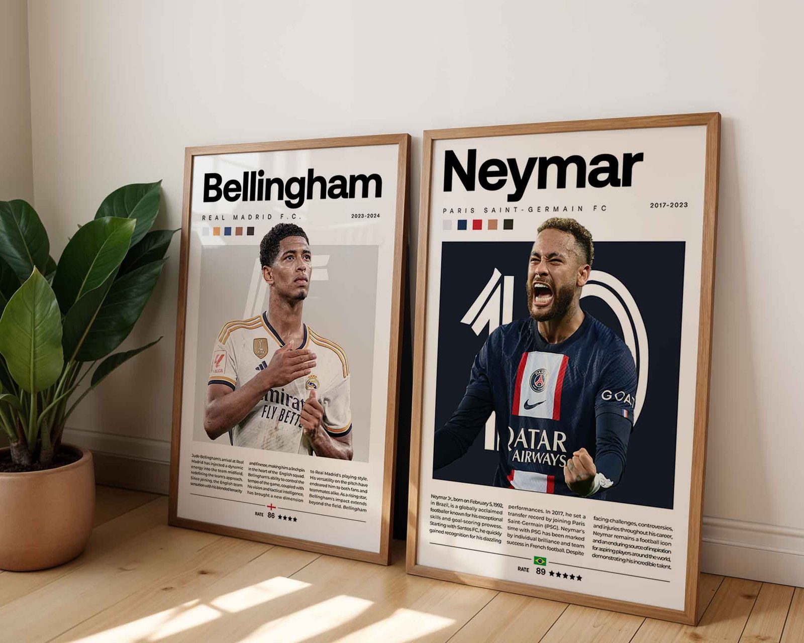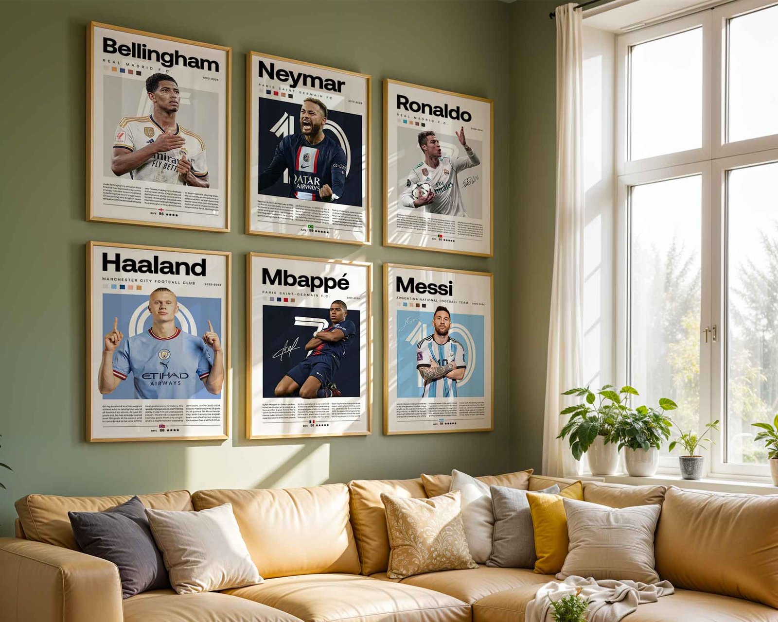 Football Legends Poster Print | Iconic Wall Art Prints of Ronaldo, Messi, Mbappé, Neymar, Haaland & Bellingham, Birthday Gift Idea for Him