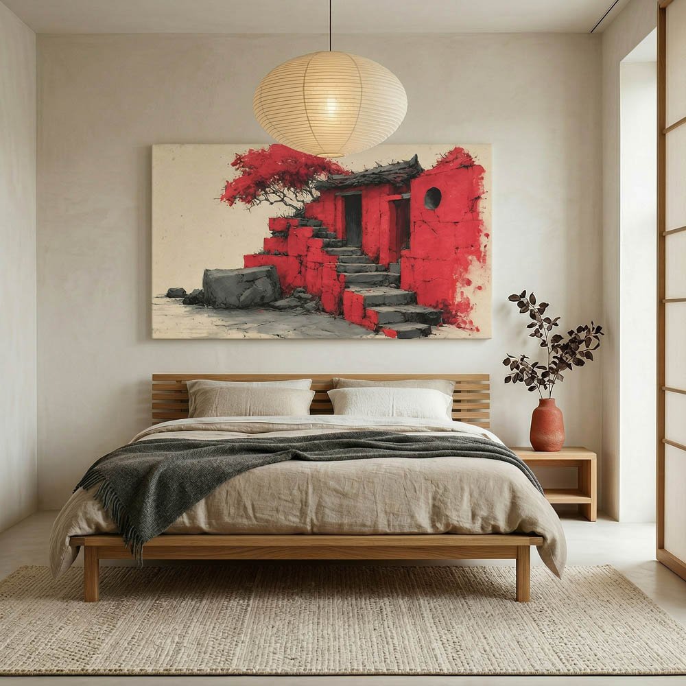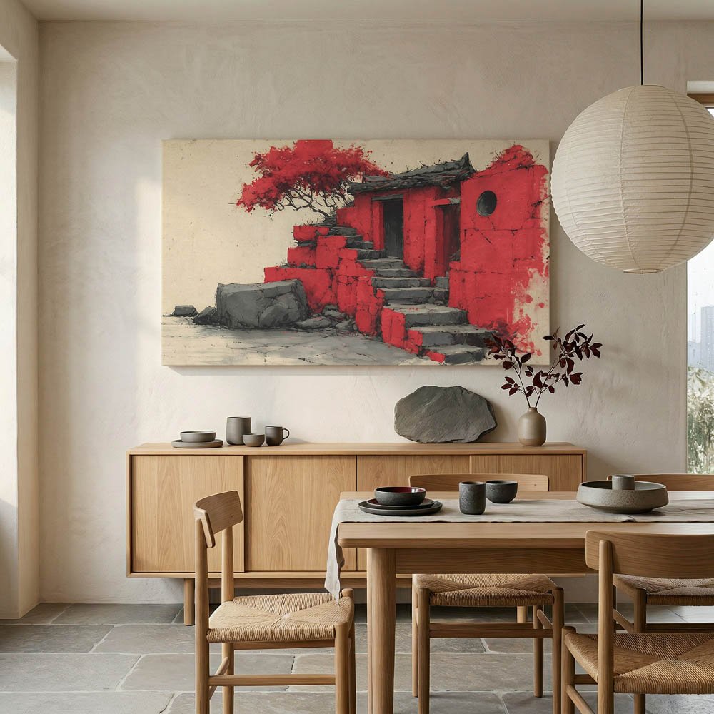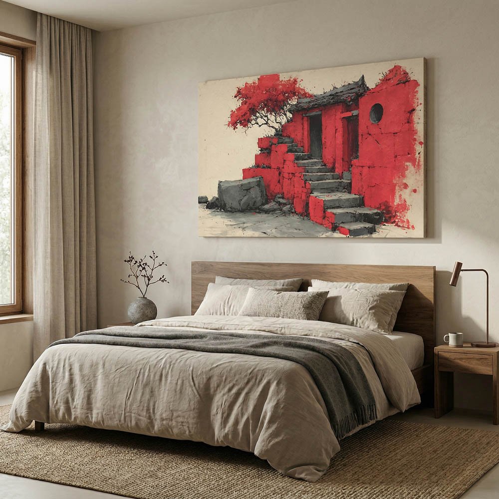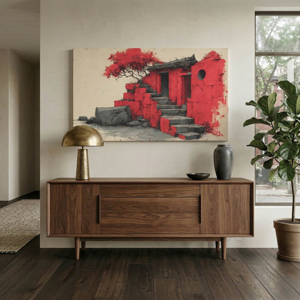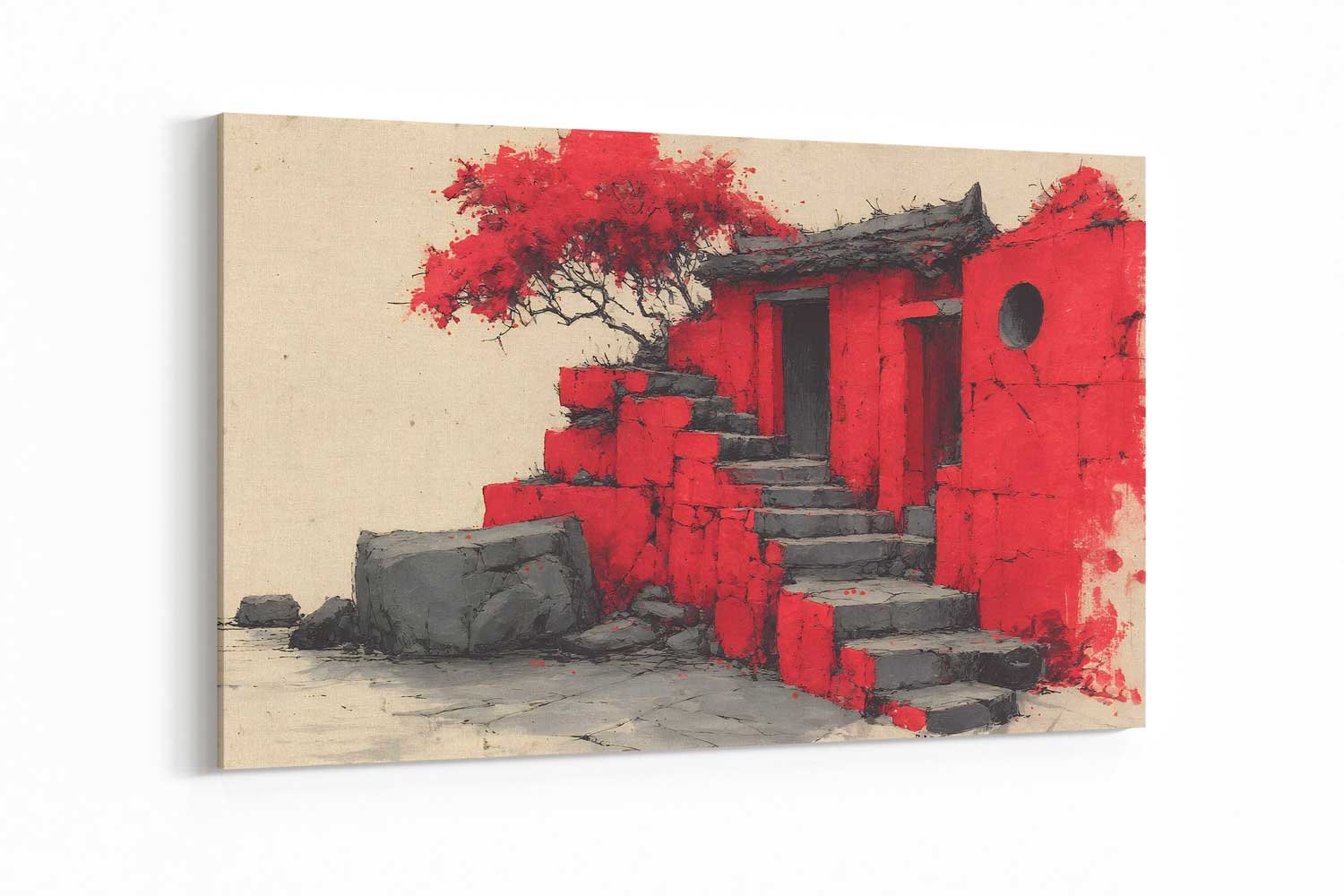 Transport your home to a realm of serene beauty and rich cultural heritage with our Red Ink Wash Style Asian Architecture Art. This exquisite canvas print is more than just decor; it’s a timeless piece of oriental heritage wall decor that gracefully blends traditional aesthetics with artistic texture, infusing your space with elegance and tranquility.