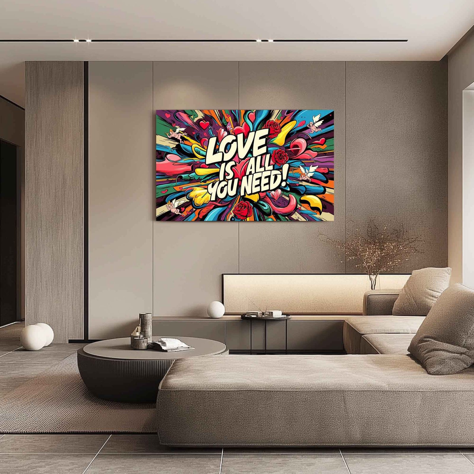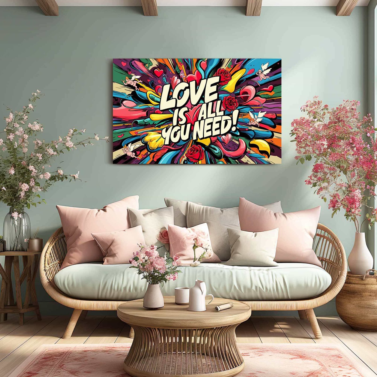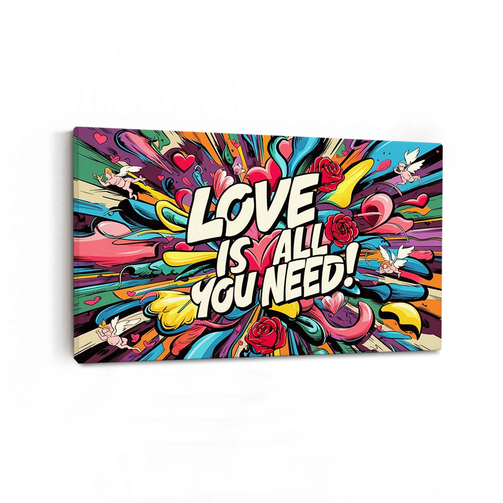 Love Is All You Need – Pop Art Print | Modern Comic Style Statement Piece | Colourful Graffiti Love Canvas Prints