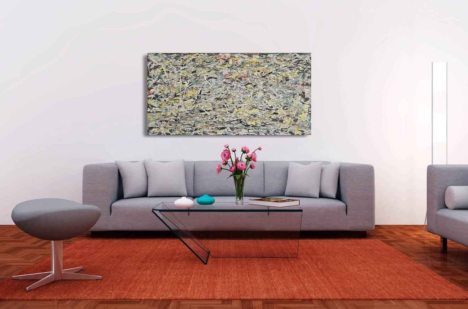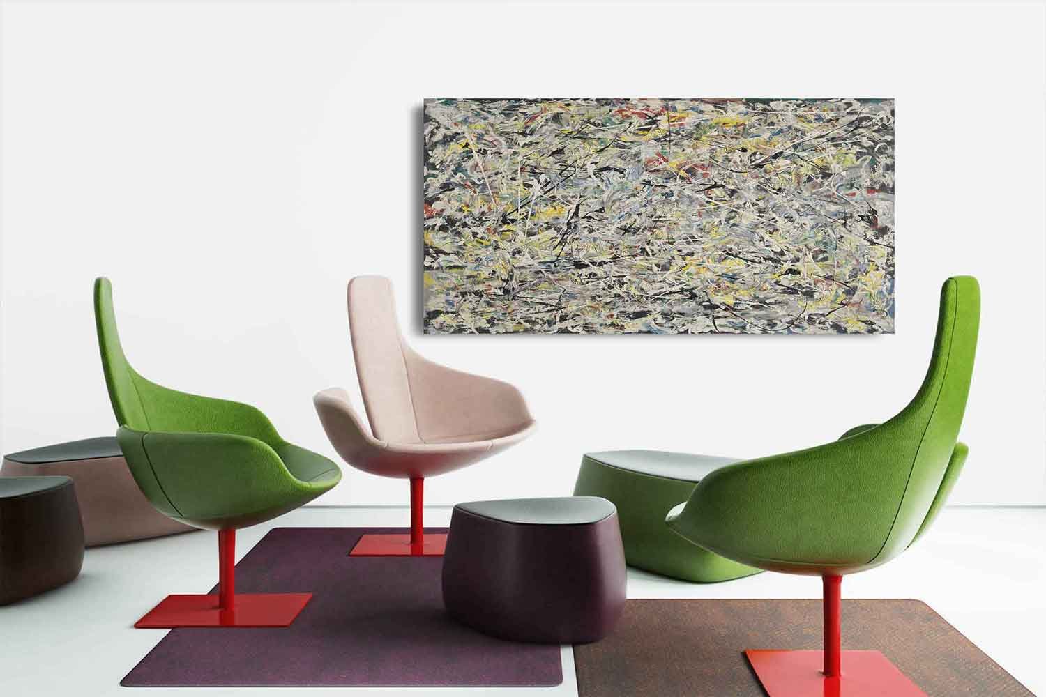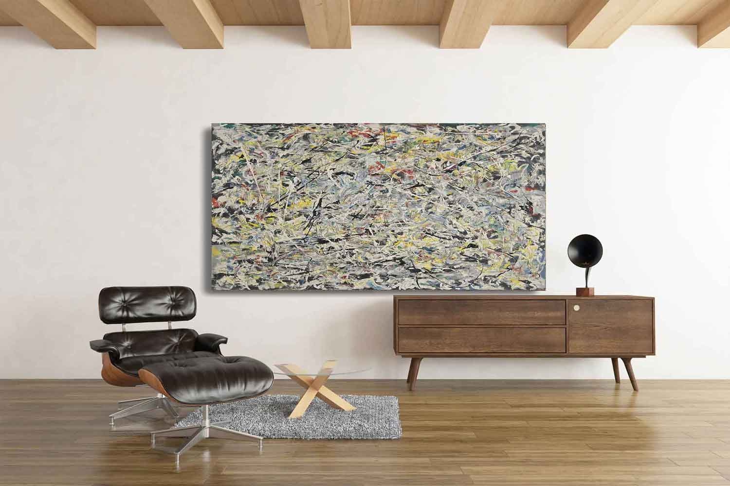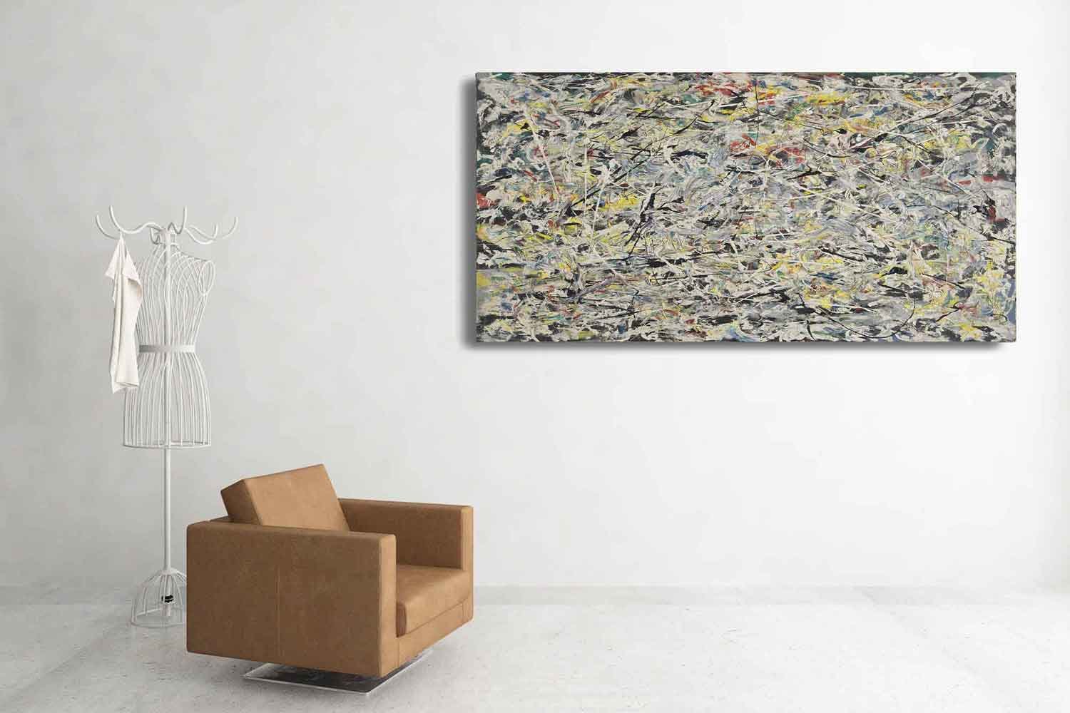 Add dynamic energy to your space with this Modern Abstract Framed Canvas Artwork by Jackson Pollock. Featuring bold strokes and vibrant movement, this XL wall art is perfect for contemporary home decor in living rooms or bedrooms.