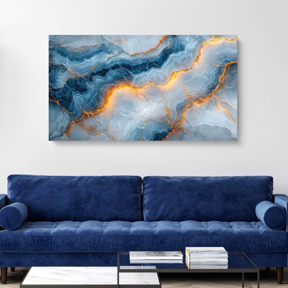 Stormy Blue and Gold – Abstract Art on Canvas Print, Contemporary Ocean Marble Print, Dark Modern Wall Decor