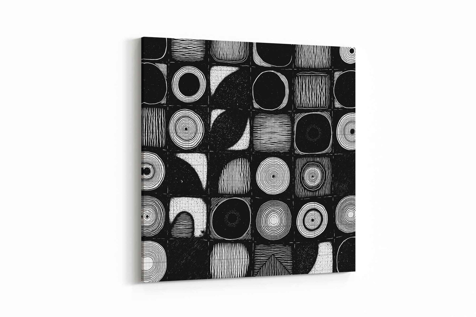 Tribal Linocut Style Abstract Art – Textured Black & White Block Print Design, Square Canvas Print
