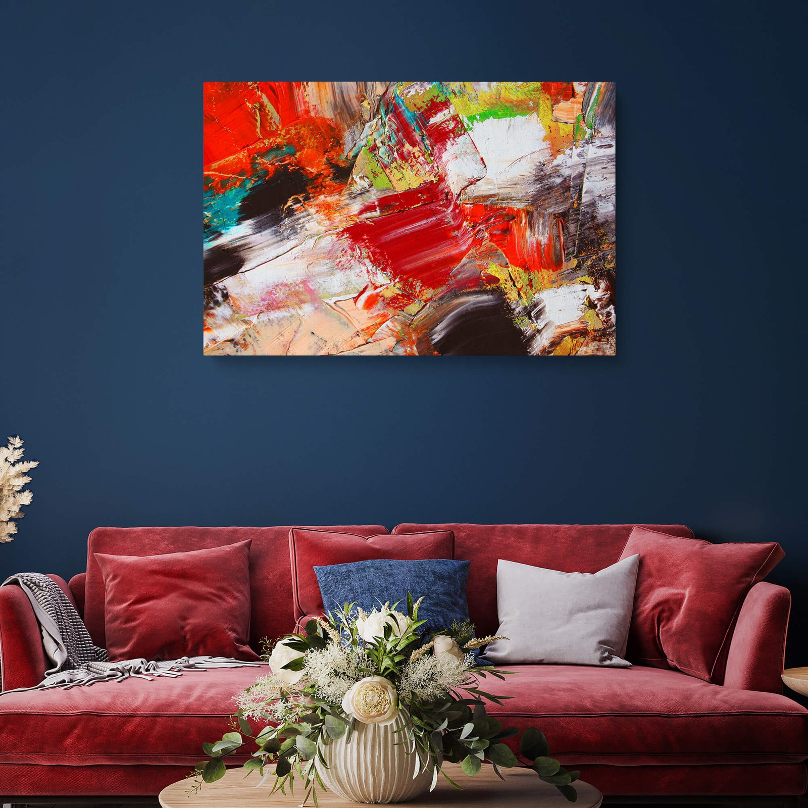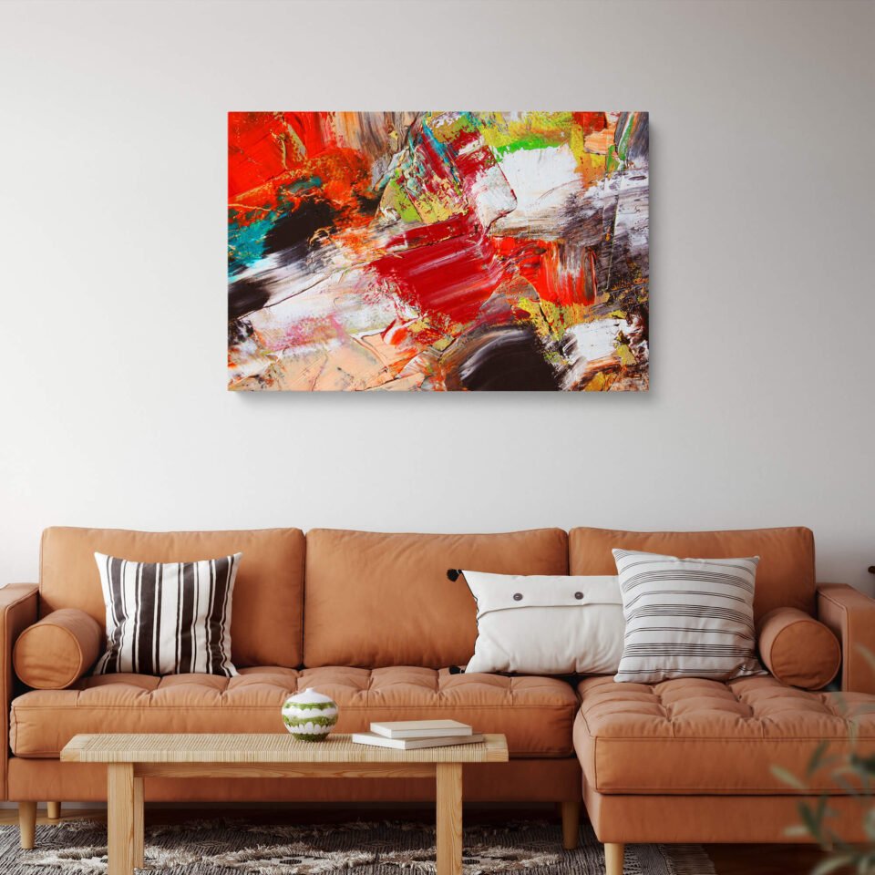 This dynamic canvas print showcases a breathtaking composition of rich, vibrant red hues contrasted with bold, dramatic black and white elements, creating a visual symphony of modern style. The graphic, abstract-inspired style gives it a contemporary edge, while the emotional intensity of the composition provides a profound focal point. This isn’t just decor; it’s a celebration of artistic freedom and powerful expression, perfect for adding a sense of sophistication, energy, and inspiration to any room.