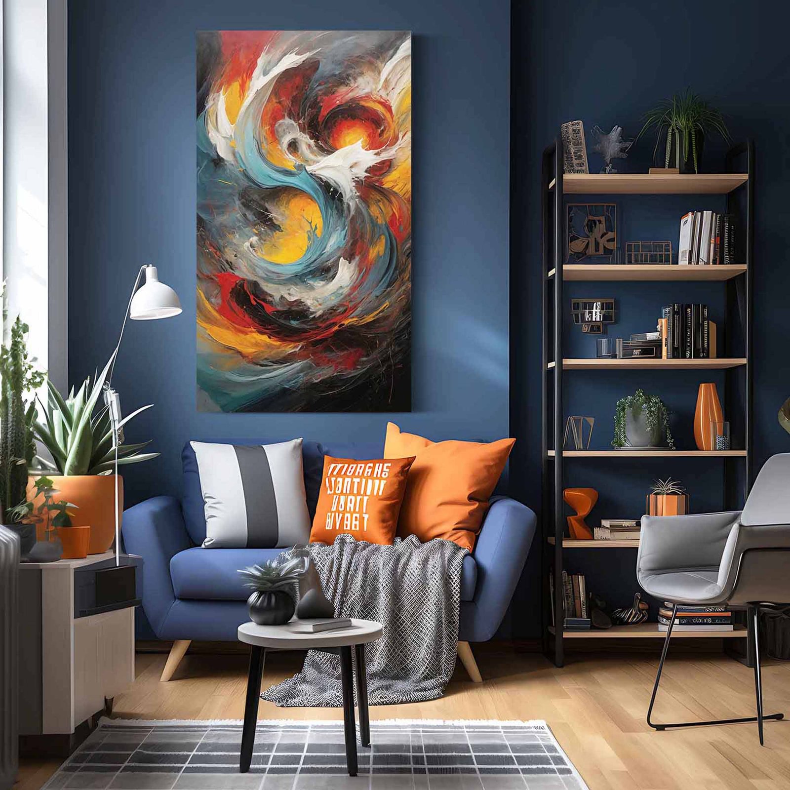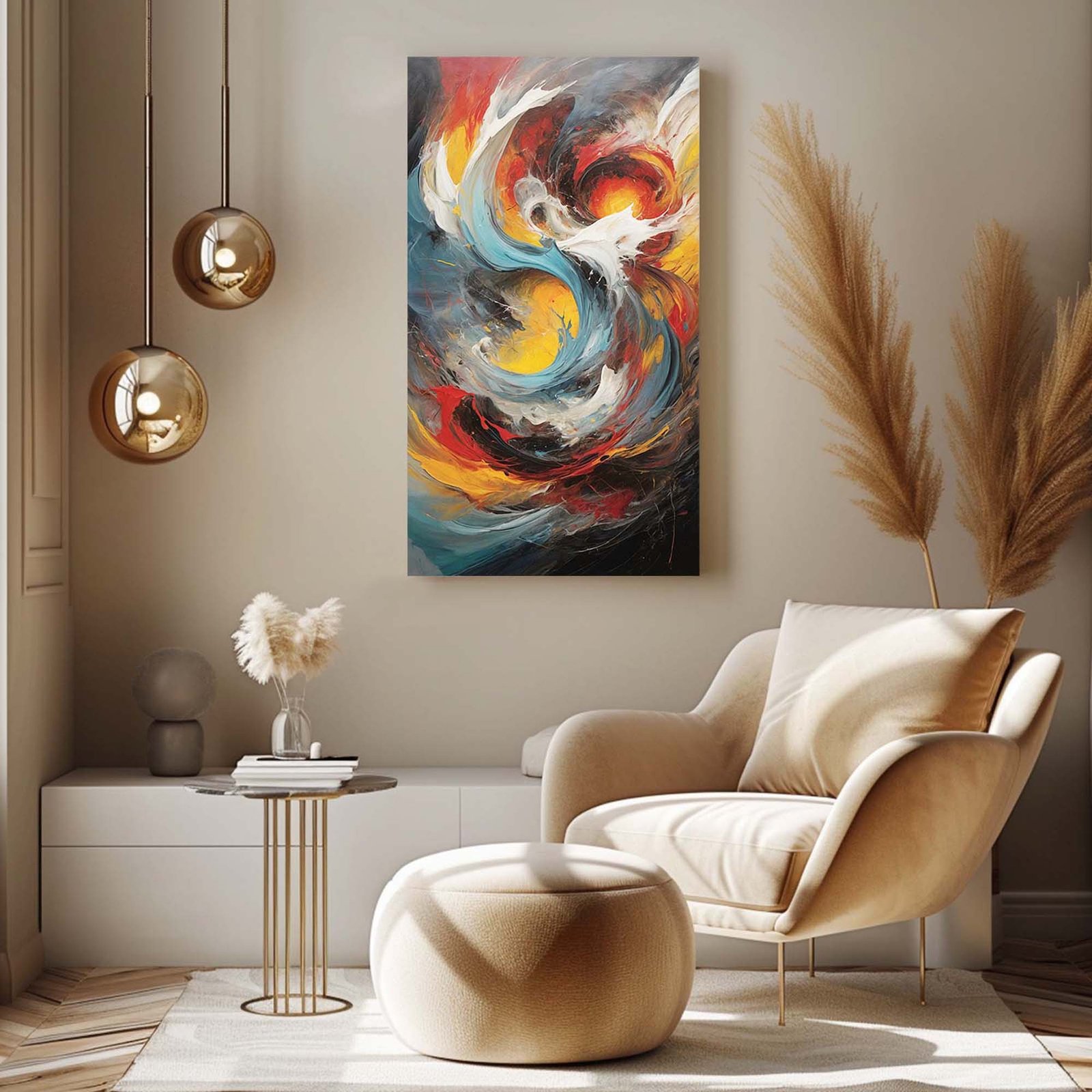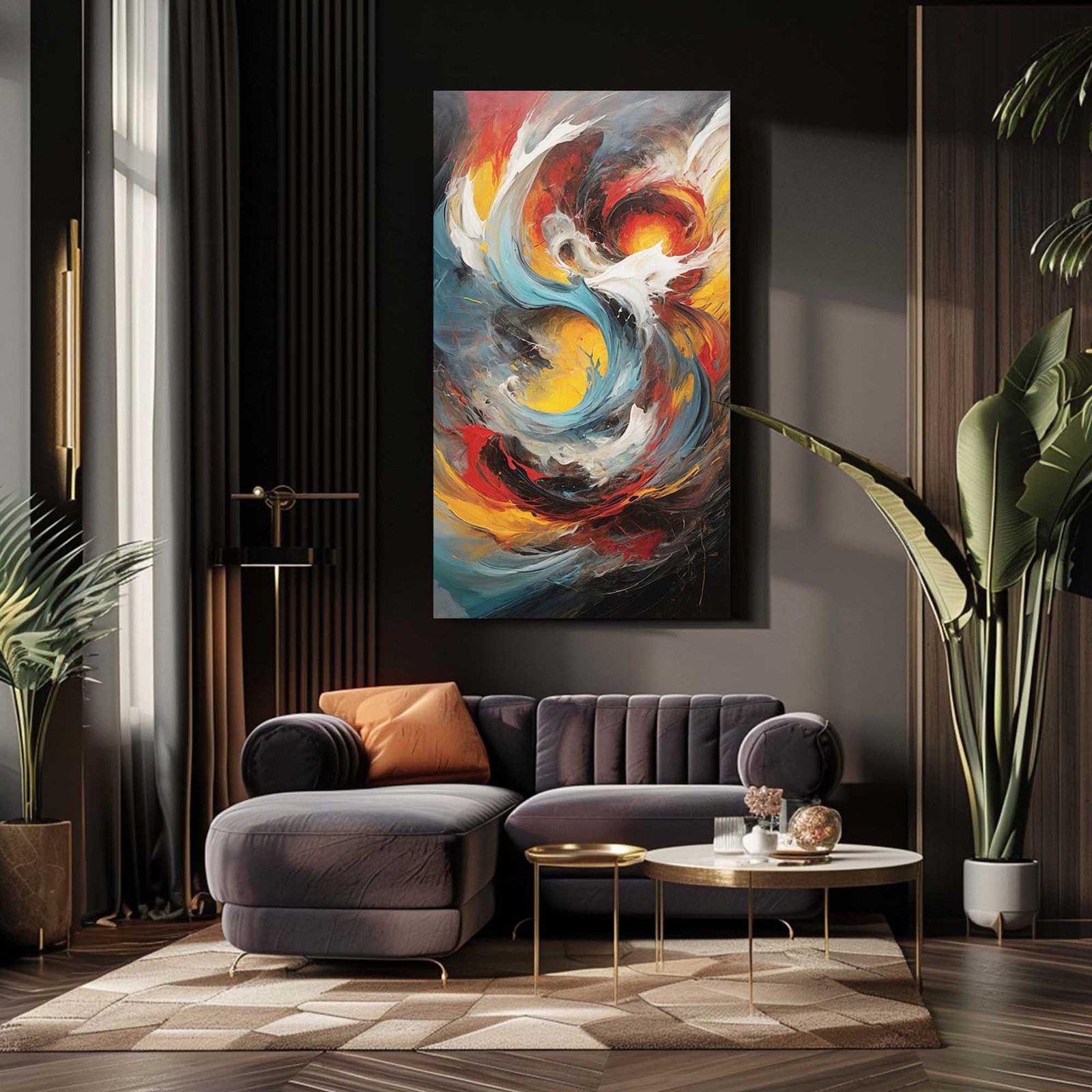 Elemental Fury – Dynamic Abstract Art Canvas Prints | Swirling Fire and Water Painting | Modern Statement Artwork