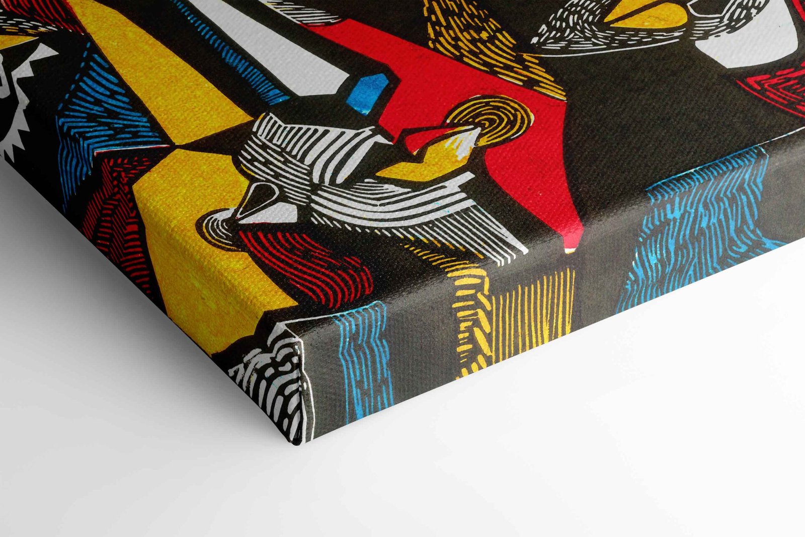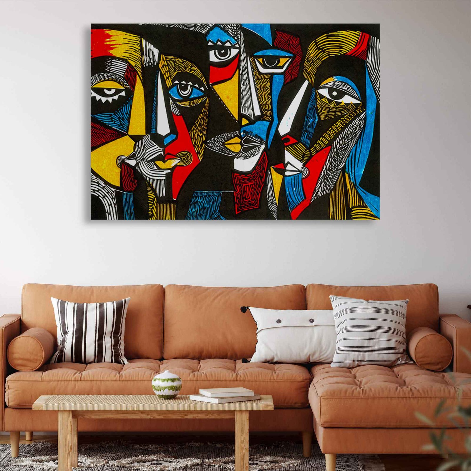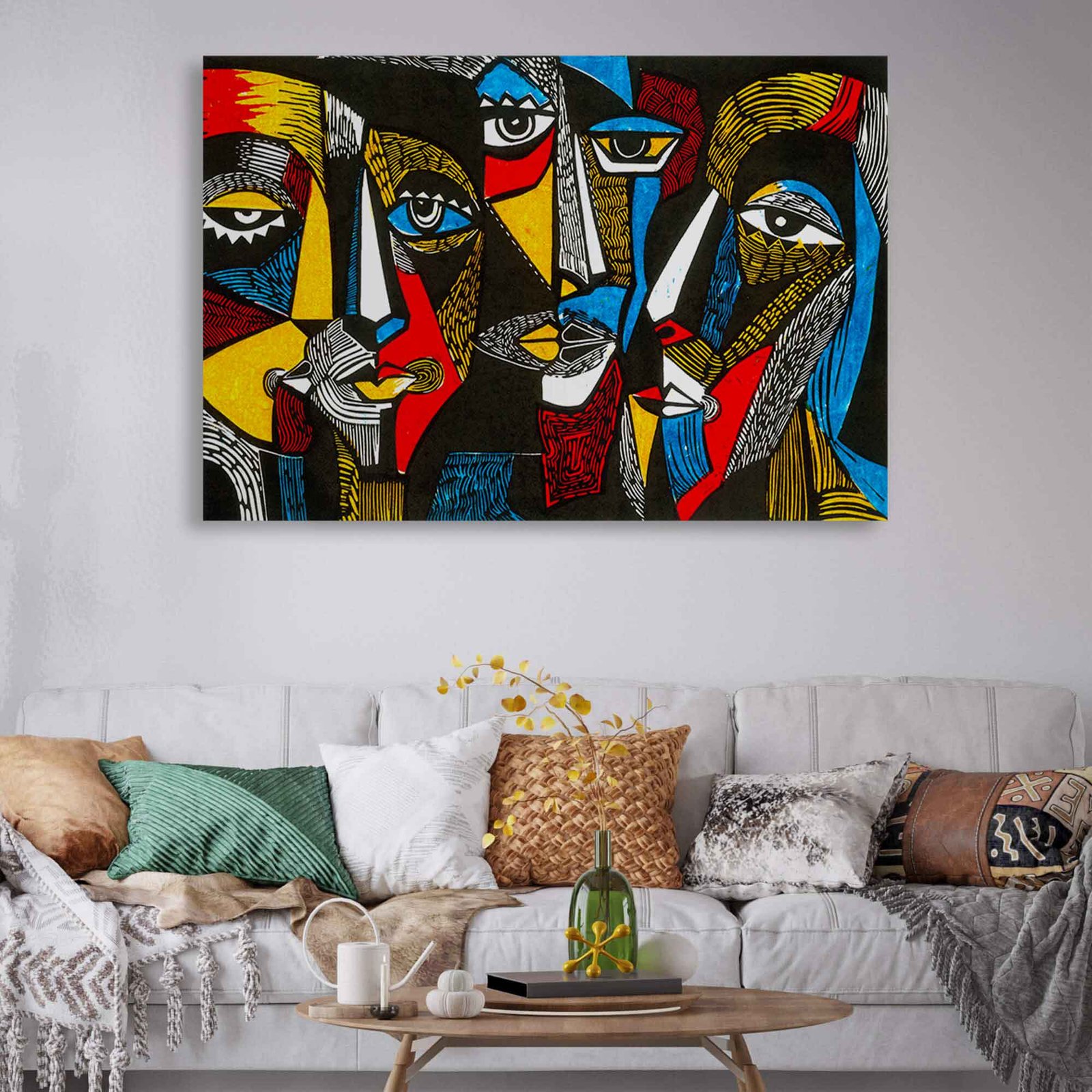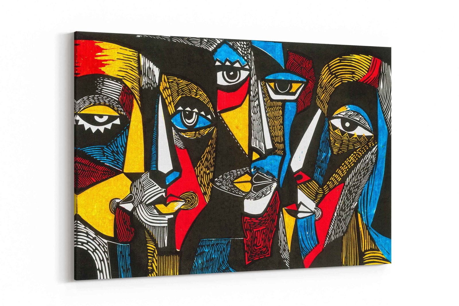 Enigmatic Visions – Wall Art – Surreal-Colored Faces in Linocut Style – Modern Art on Canvas Prints