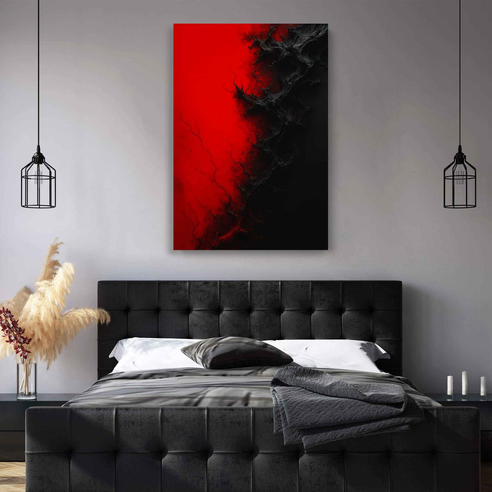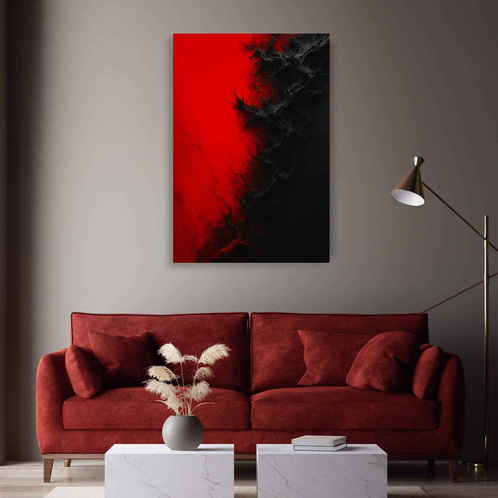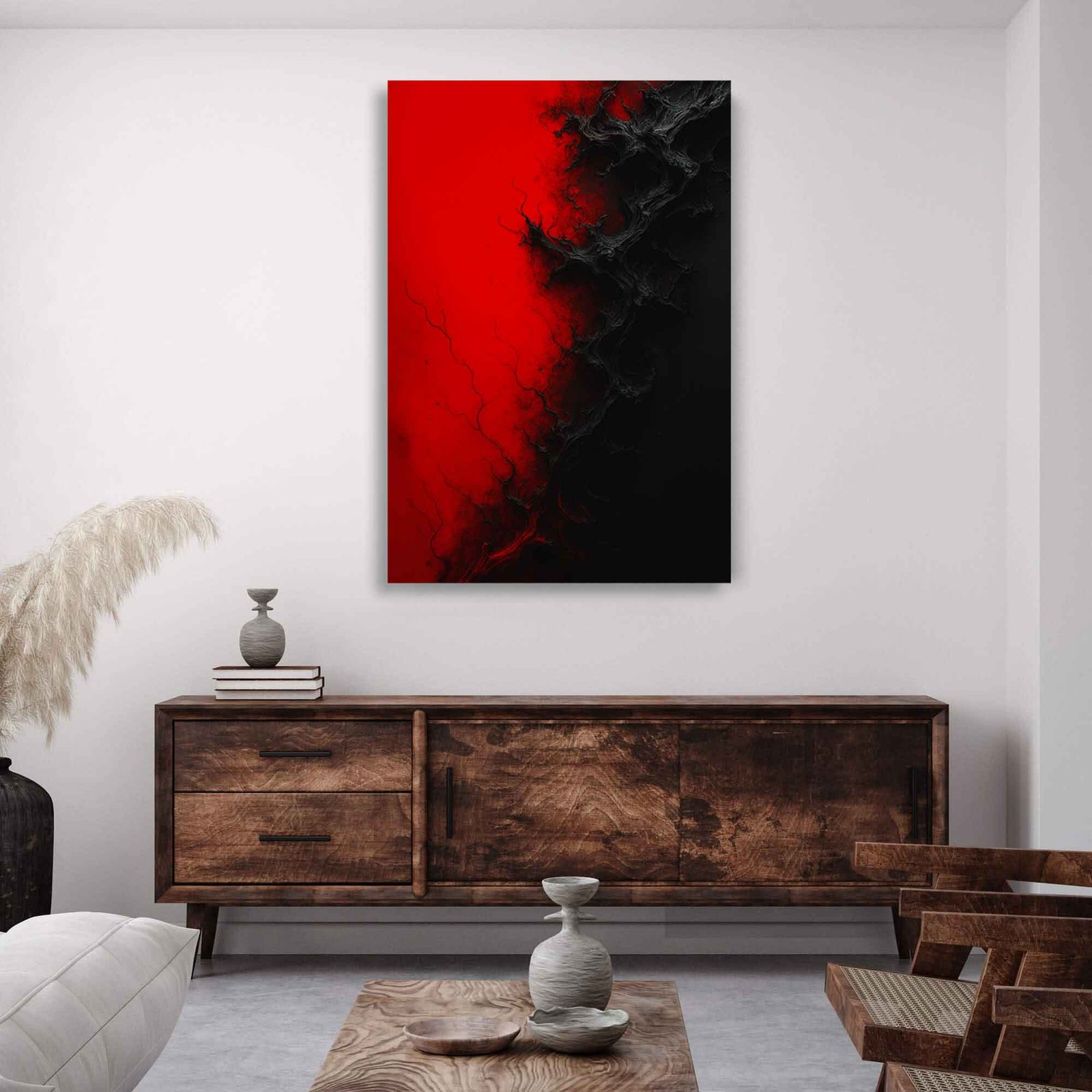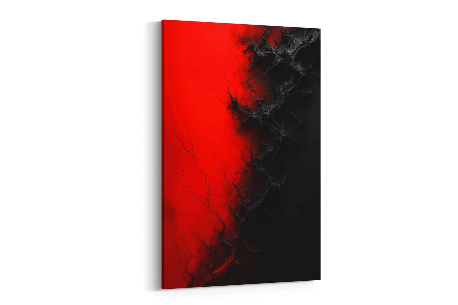 Unleash a bold statement with this Red and Black Abstract Art on Canvas Art Print. This piece captures a dramatic tension between two contrasting worlds: a vivid, fiery red and a deeply textured, gnarled black. The dynamic split creates an intense, organic visual experience that draws the eye and holds attention, making it a perfect focal point for any room.