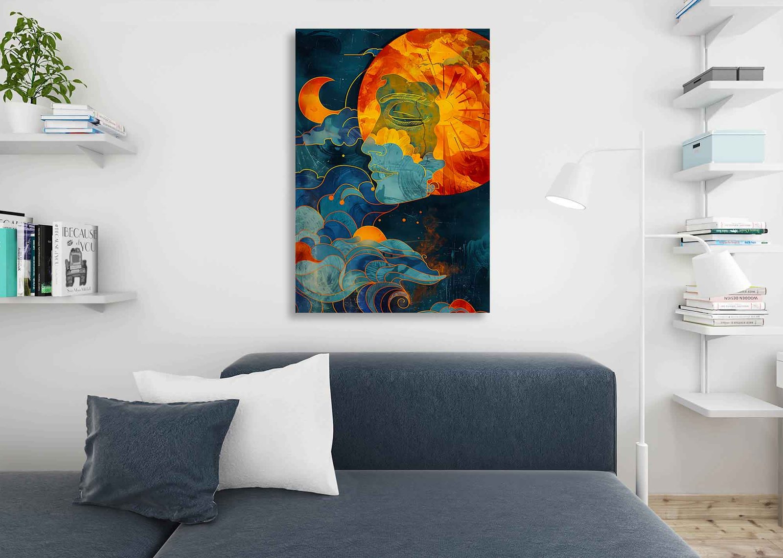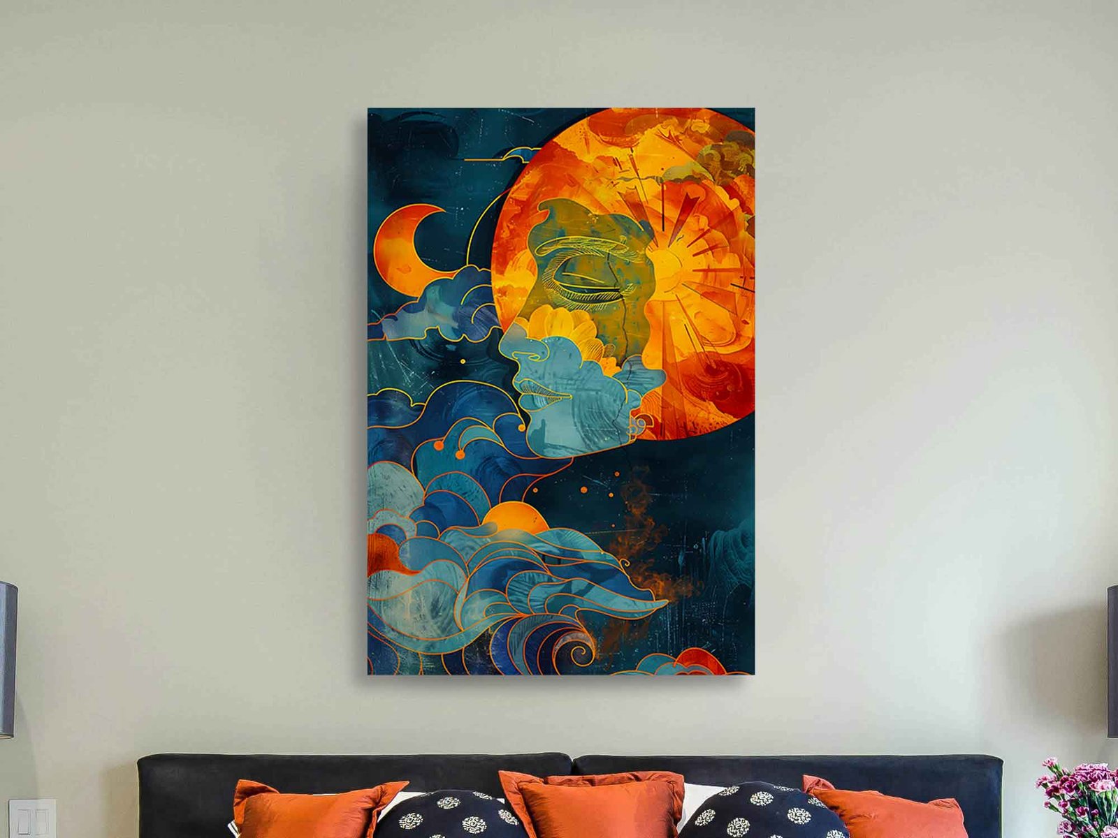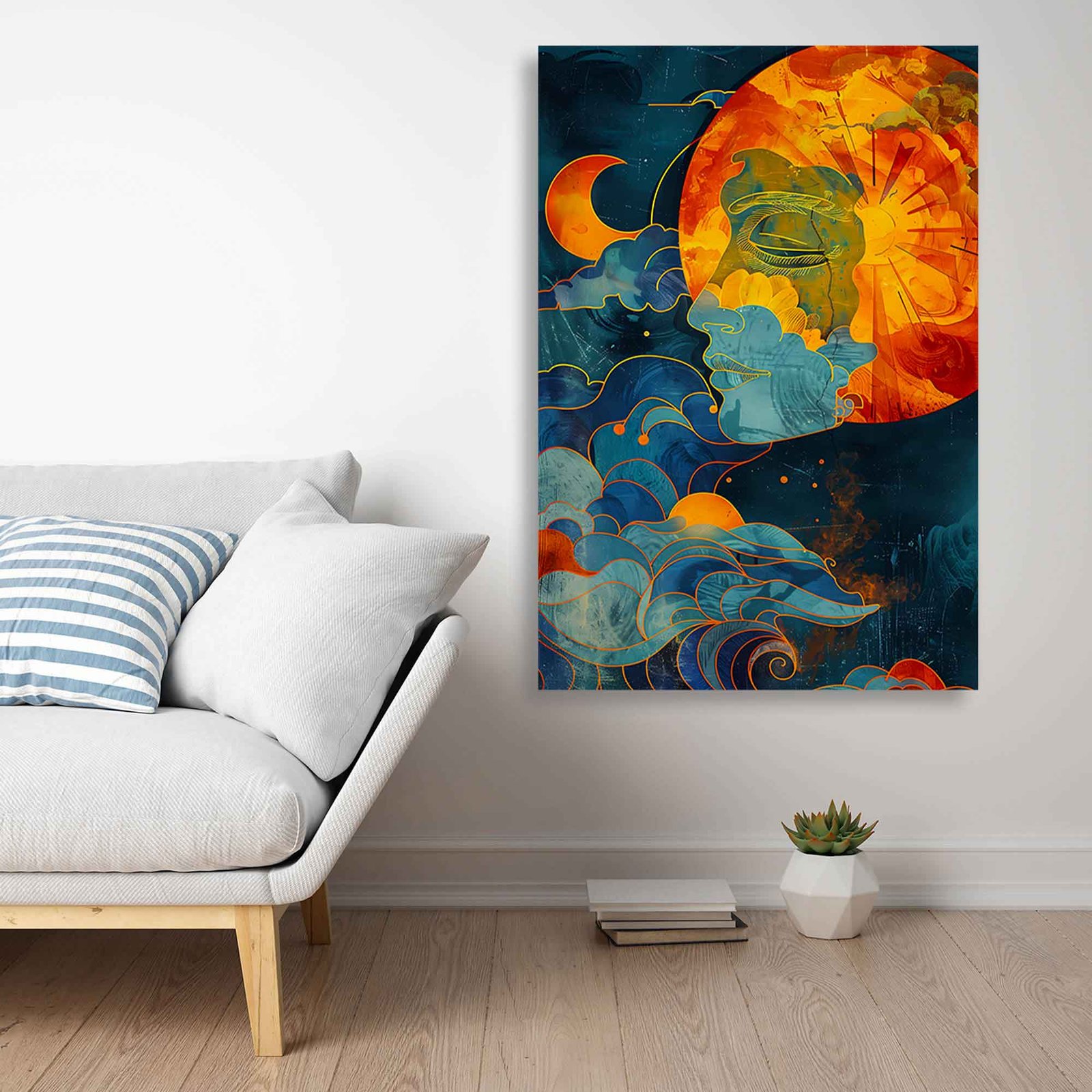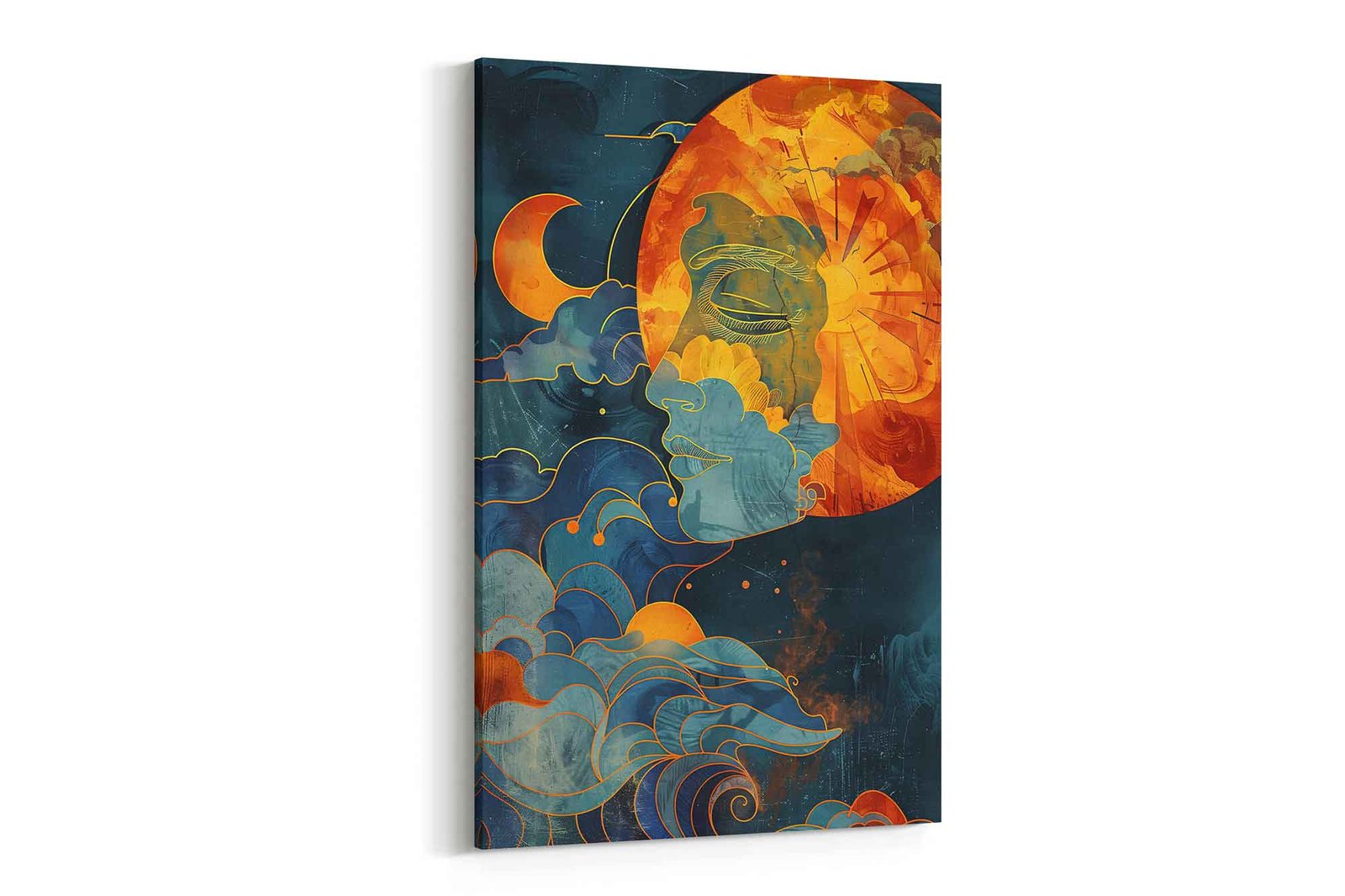 Spiritual Moon and Sun Abstract Canvas Wall Art – Abstract Celestial Canvas Artย