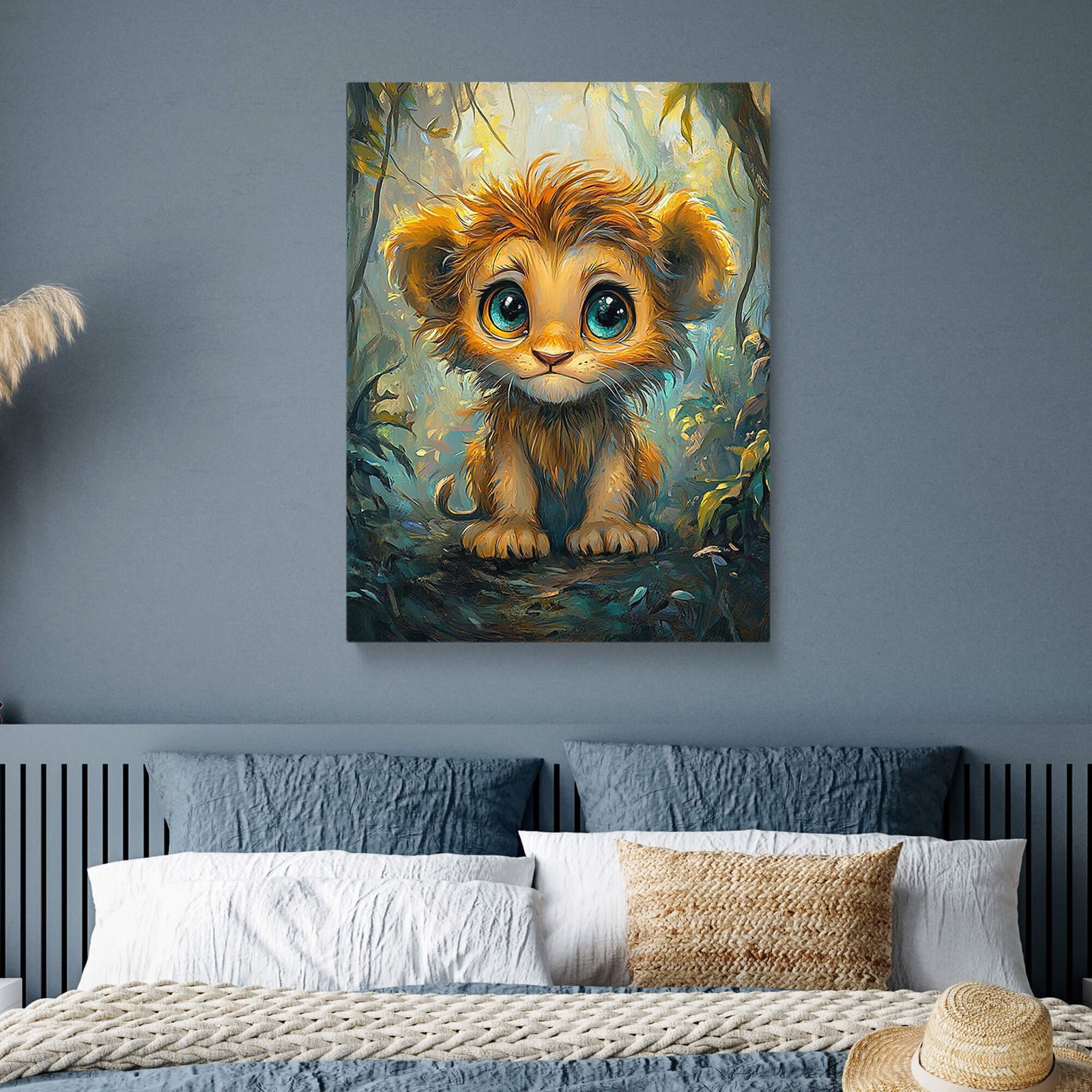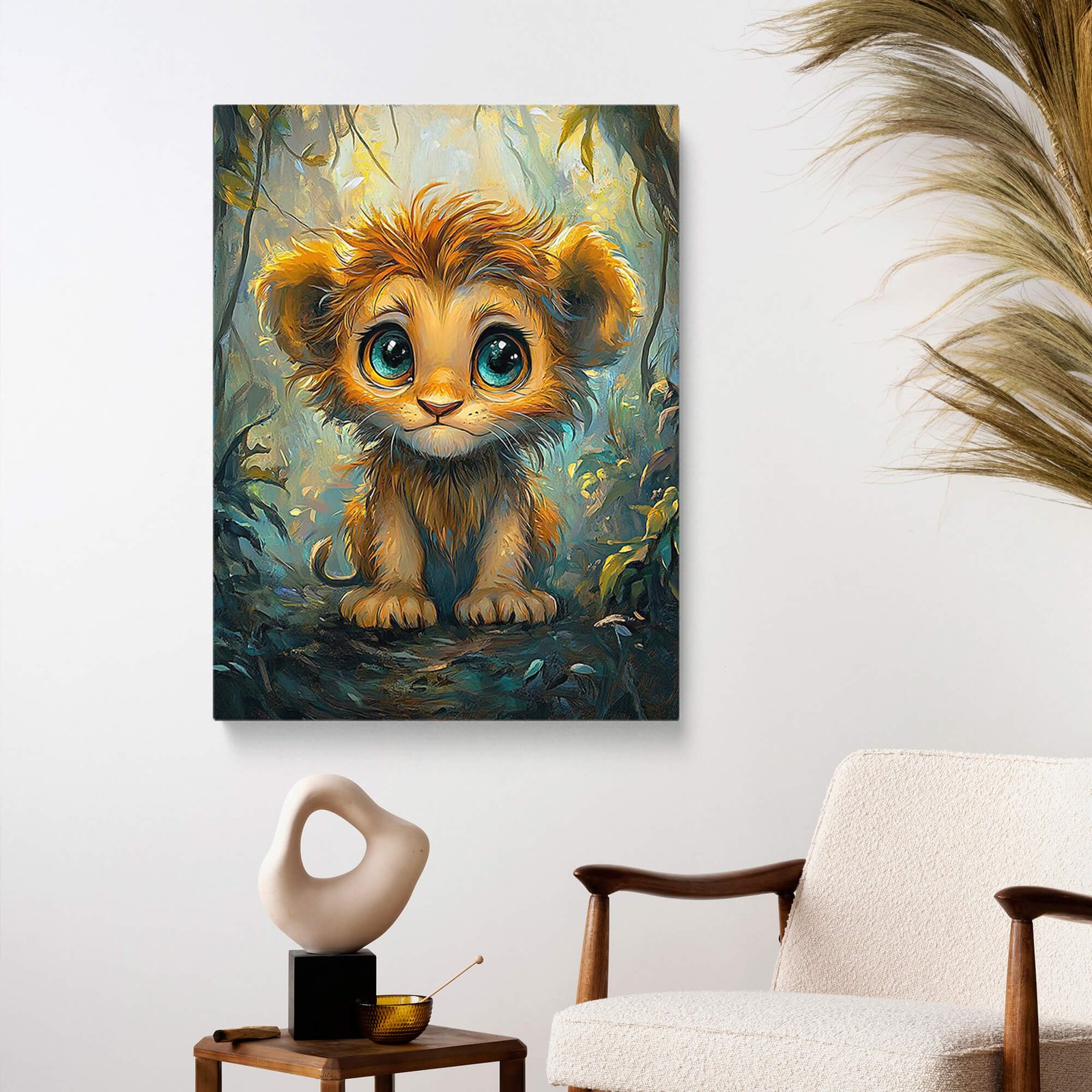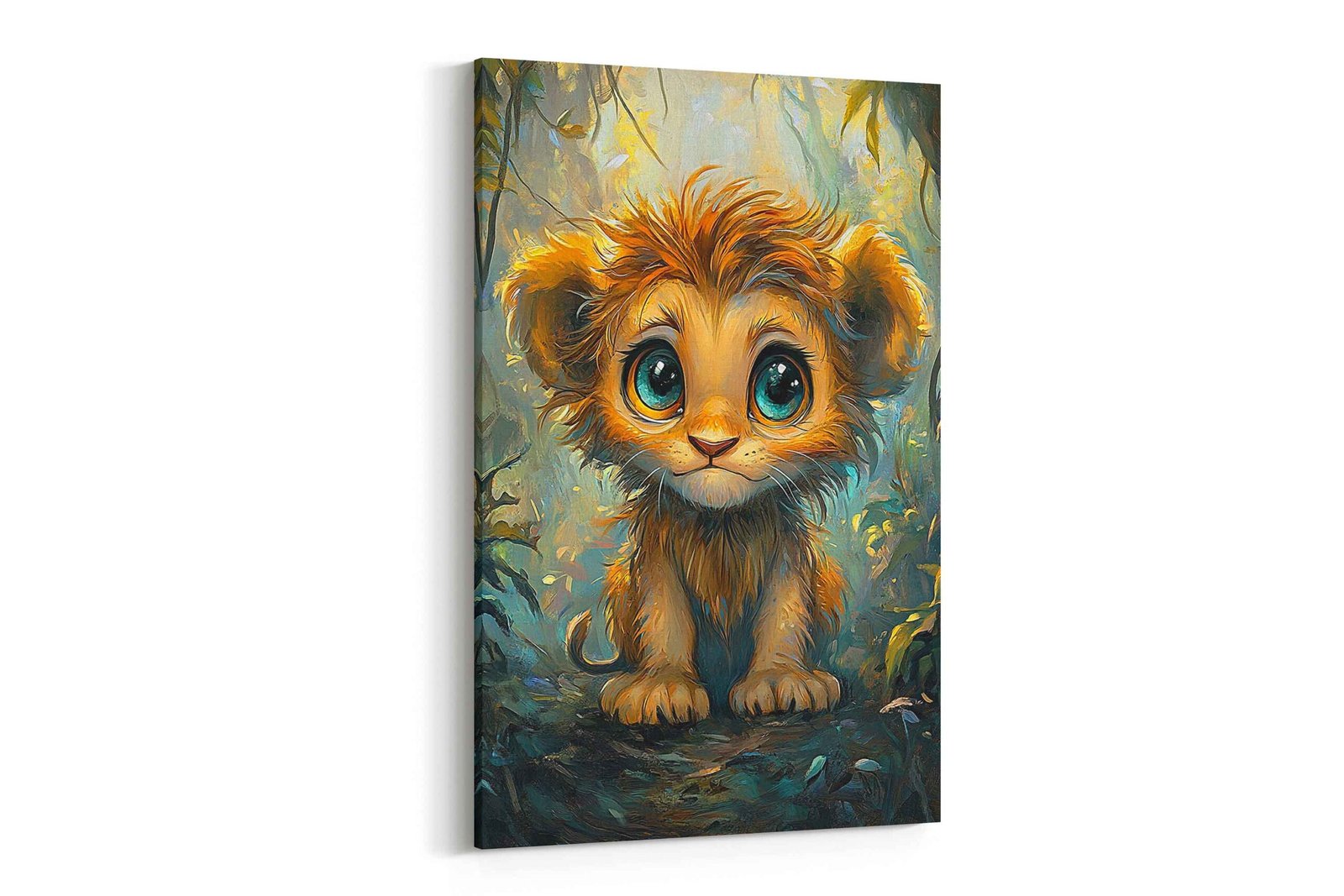 Cute Lion Cub Canvas Print, Big Eyed Jungle Animal Art, Enchanted Forest Nursery Decor