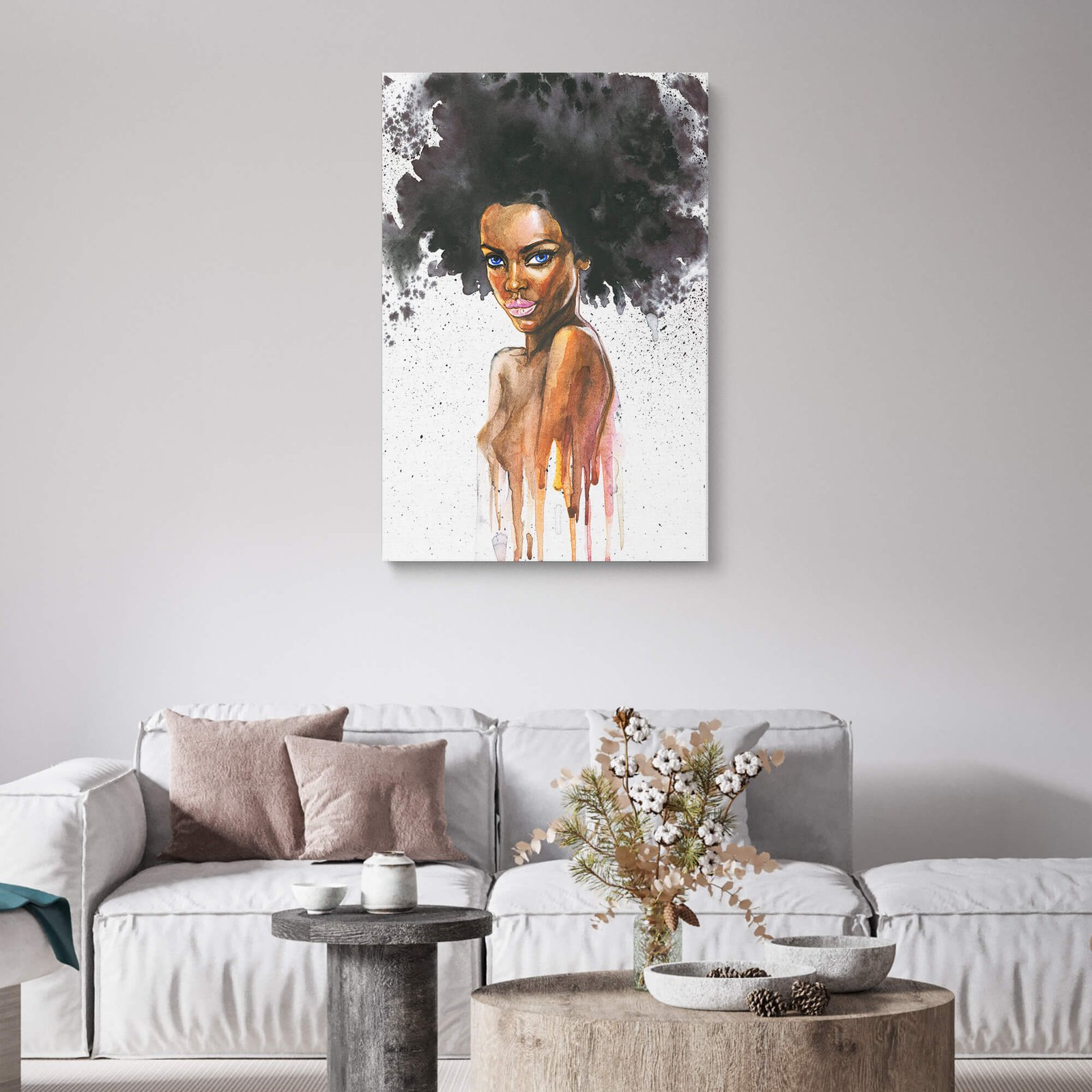 Ink Escapades – Curly Haired Black Woman in a Leaking Portrait – Canvas Prints