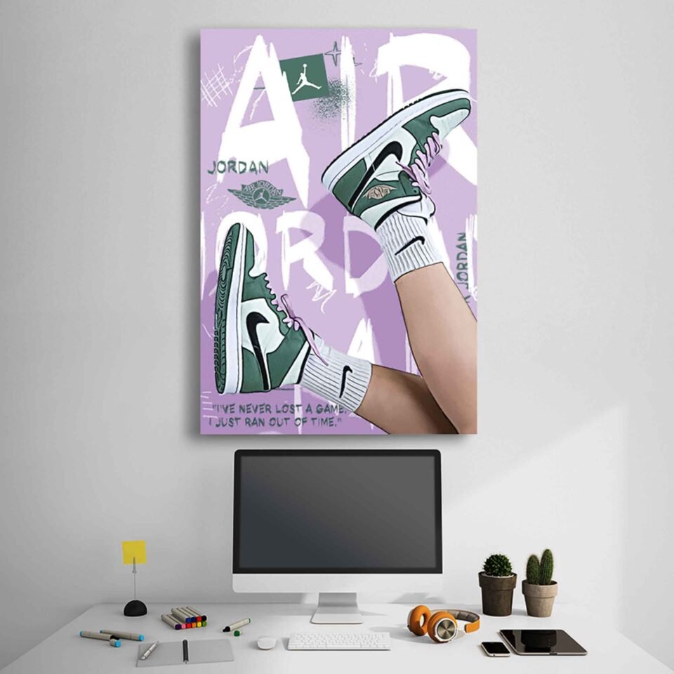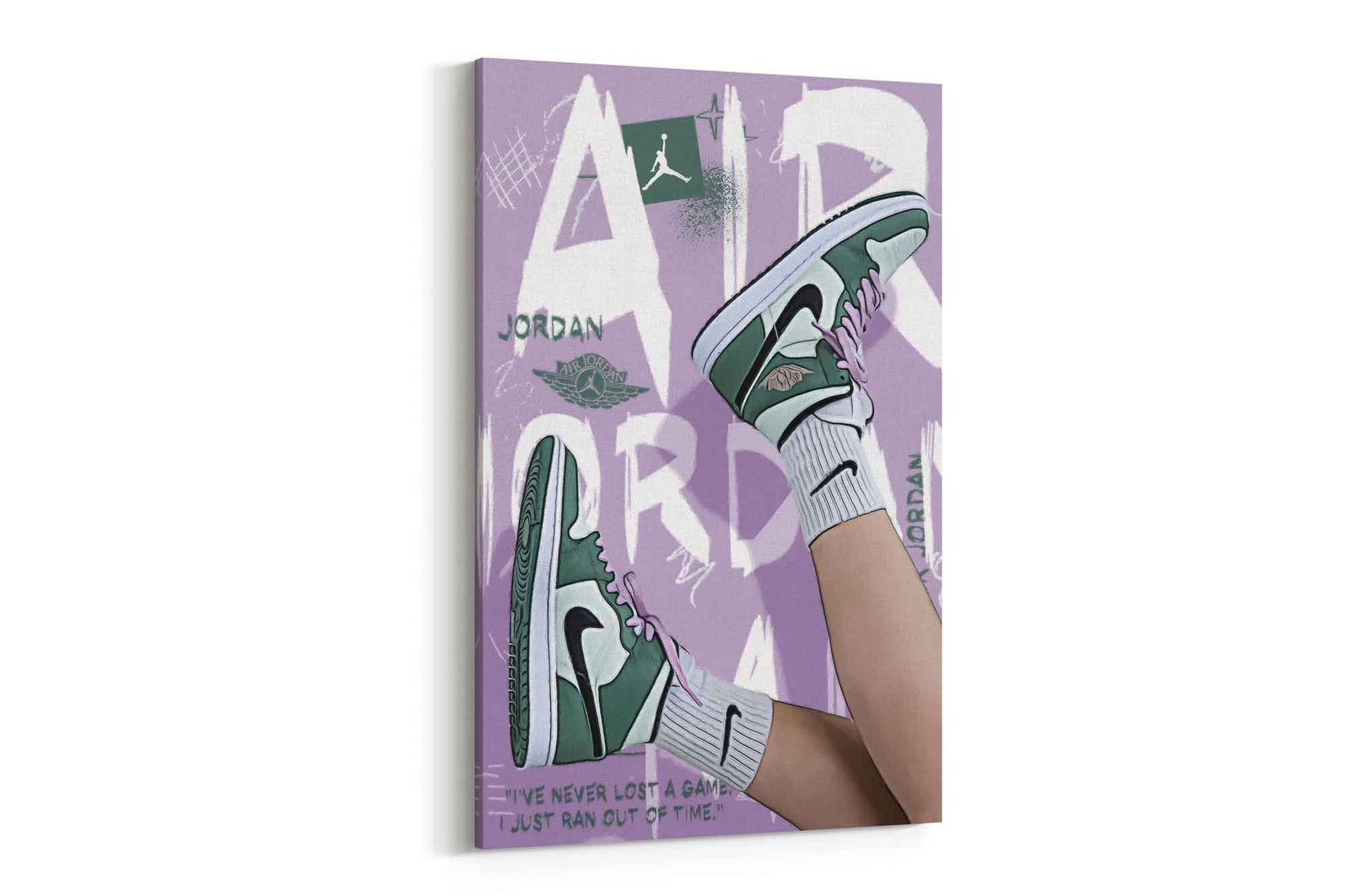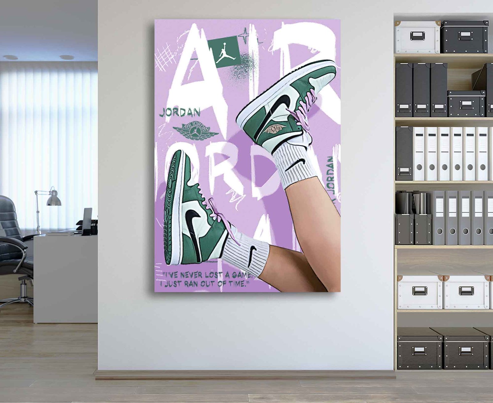 Against a minimalist lavender background, bold “AIR JORDAN” graphics and an inspiring quote associated with Michael Jordanโ”I’ve never lost a game, I just ran out of time”โcreate a unique blend of style and motivation. This artwork is a perfect fusion of fashion, sport, and contemporary design, making it a powerful statement piece. Each canvas wall art print is a high-quality reproduction that captures the clean lines and vibrant colors, transforming your wall into a gallery of modern aesthetic.