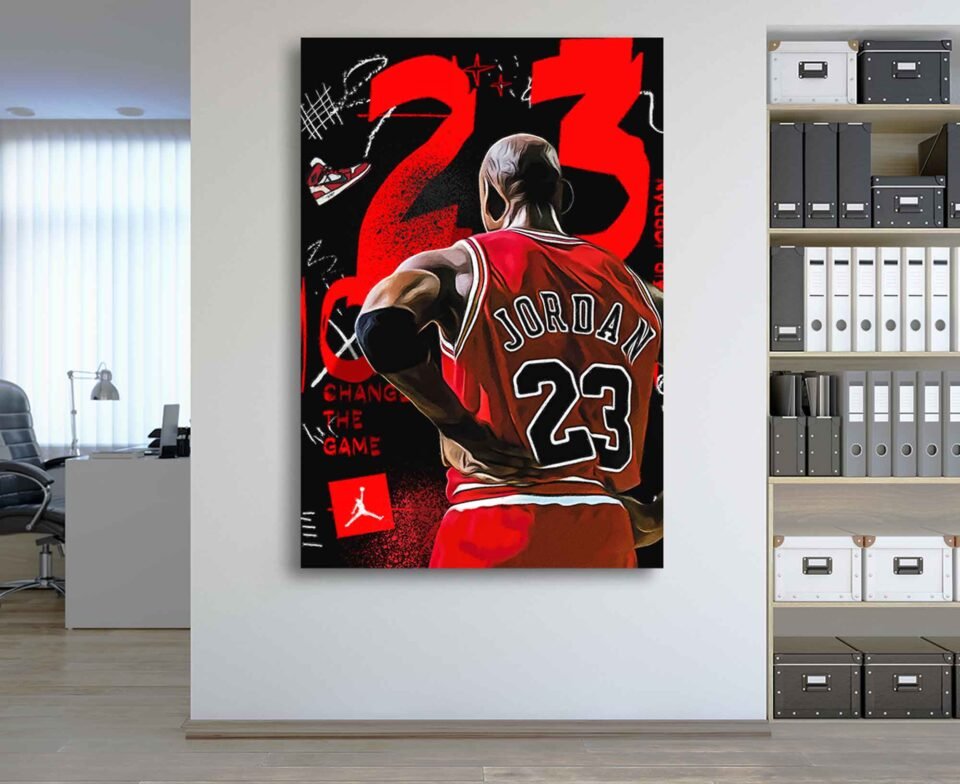 Unleash the spirit of a true icon into your space with our Legend No 23 Michael Jordan – Canvas Wall Art. This electrifying piece is more than just decor; it’s a powerful “Change The Game” Graffiti Print that pays homage to the unparalleled greatness of Michael Jordan, making it the ultimate Basketball Decor for Man Cave, Office, or any space dedicated to passion and victory.