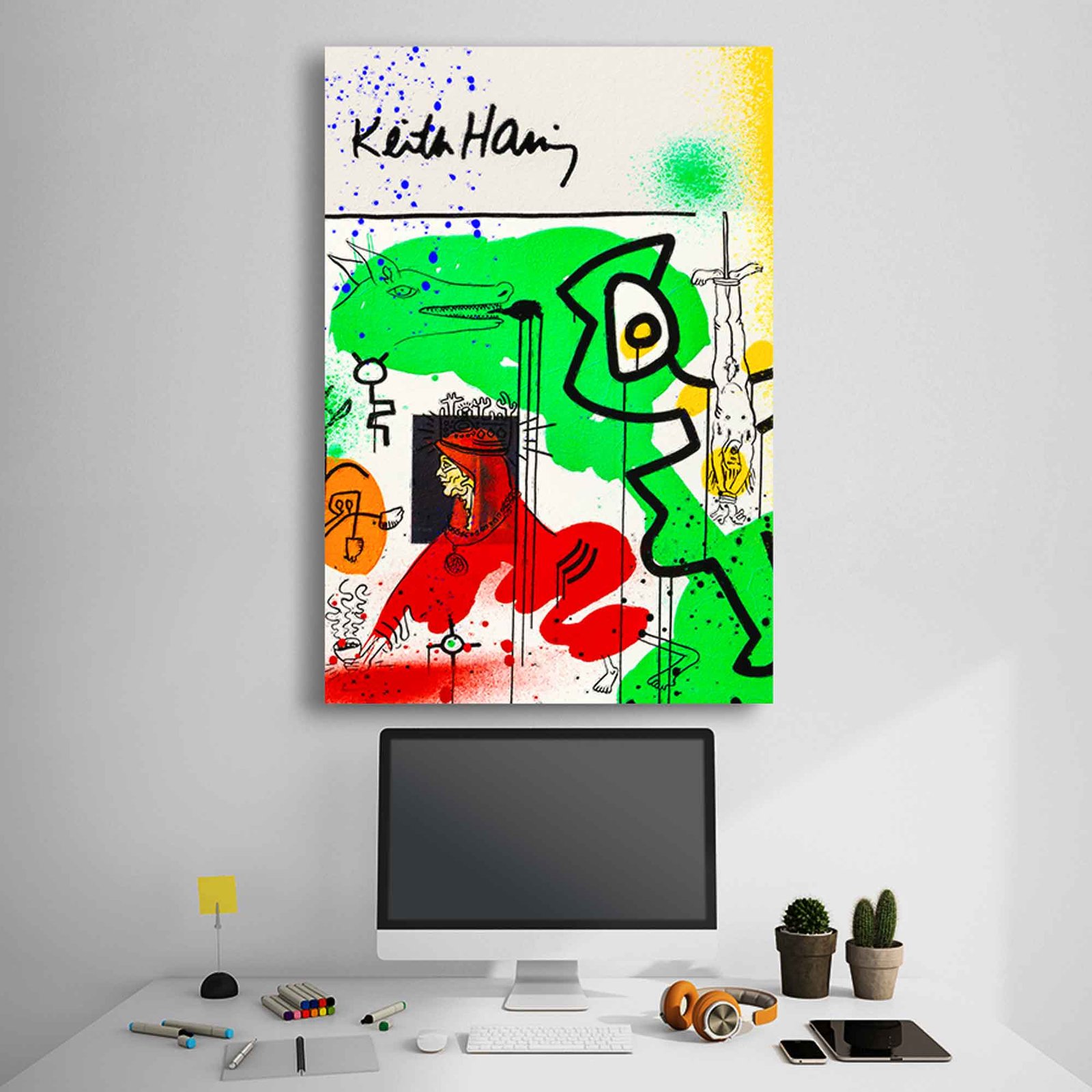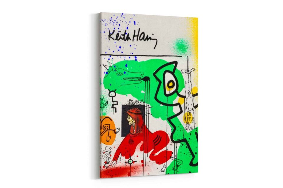 This striking canvas print is a vibrant homage to the groundbreaking aesthetics of both Keith Haring and Jean-Michel Basquiat. It explodes with abstract forms, spontaneous lines, and raw textures, reminiscent of Haring’s energetic dancing figures and Basquiat’s powerful, expressive symbols. Expect a rich interplay of bold colors, spray paint effects, and hand-drawn elements that capture the untamed spirit of authentic graffiti art. This isn’t just a print; it’s a visual symphony that embodies the “primal energy” of urban creativity, blending the accessible appeal of Pop Art with the profound depth of Neo-Expressionism. It’s a truly unique piece that will transform your space into a gallery of contemporary thought and rebellious artistry.