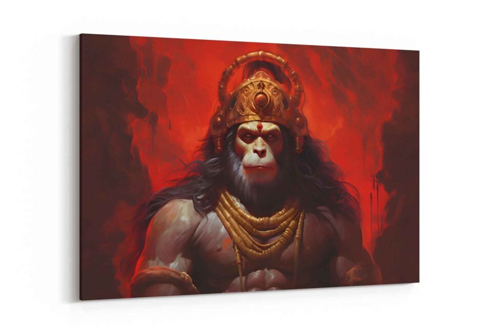 Powerful Lord Hanuman Canvas Wall Art โ Spiritual Hindu Deity Print for Home & Meditation Decor