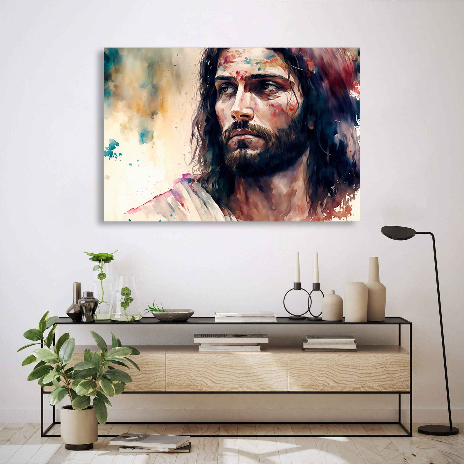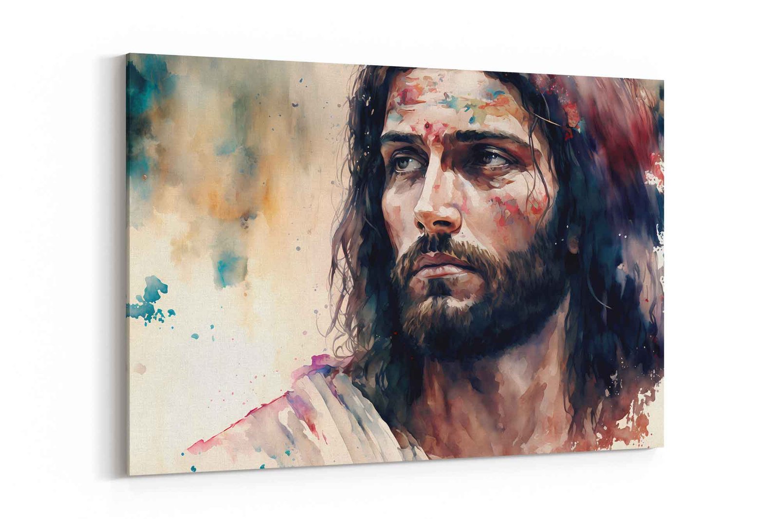 Experience peace and devotion with this watercolour portrait of Jesus Christ. A powerful spiritual canvas wall art print that brings a sense of faith, calm, and inspiration to any room.