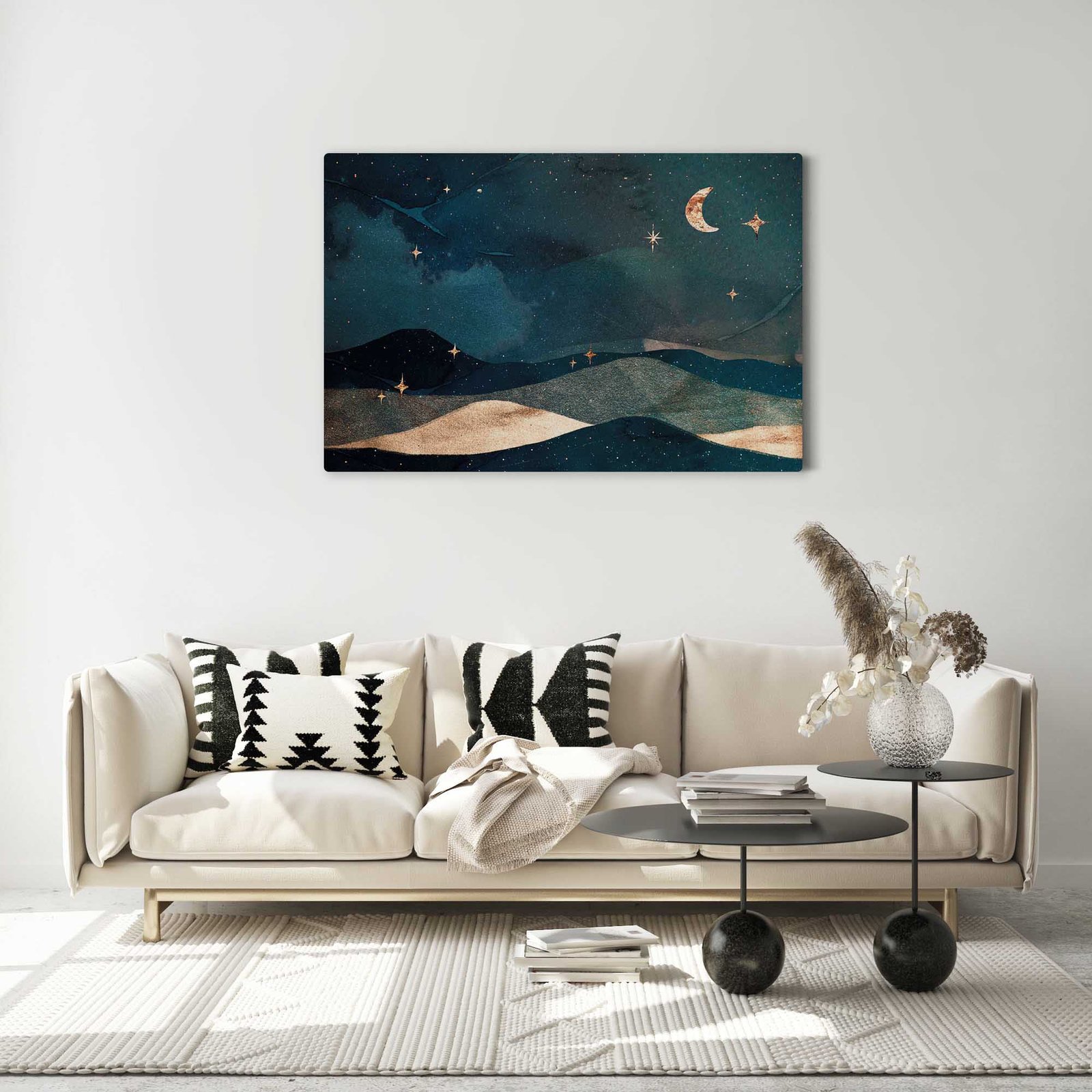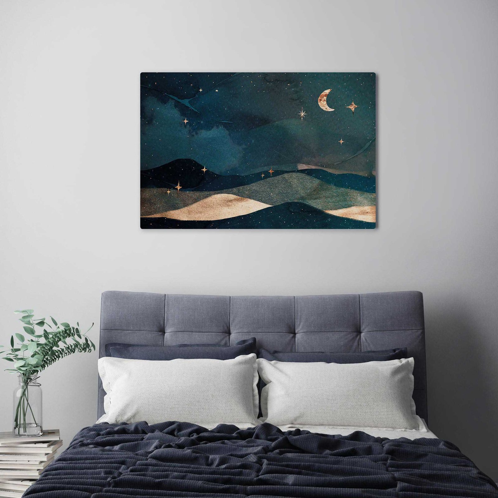 This captivating artwork brings the night sky to life, adorned with a brilliant display of stars, evoking a sense of calm and serenity. The serene nightscape brings a sense of peace, making it a delightful addition to any room.