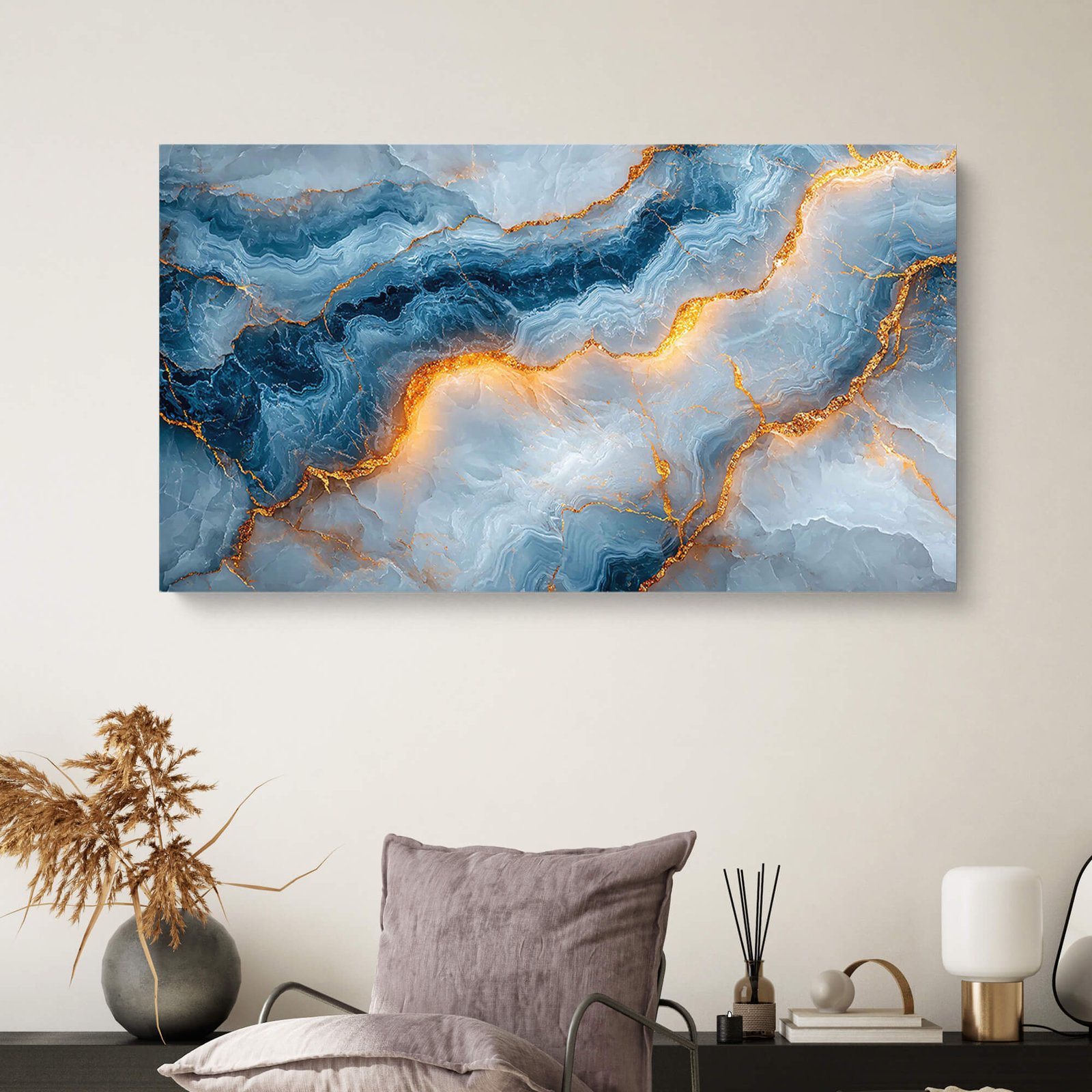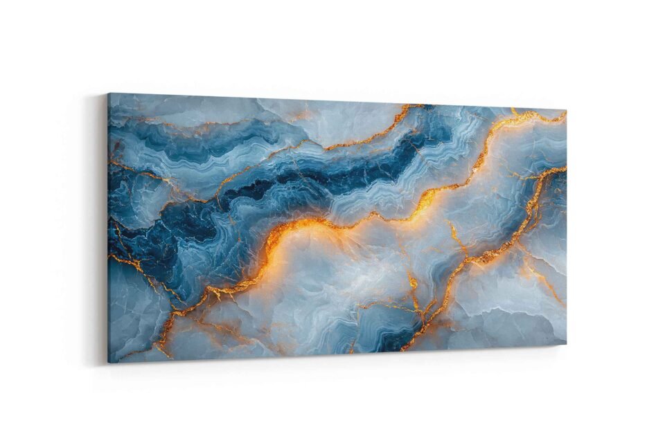 Stormy Blue and Gold – Abstract Art on Canvas Print, Contemporary Ocean Marble Print, Dark Modern Wall Decor