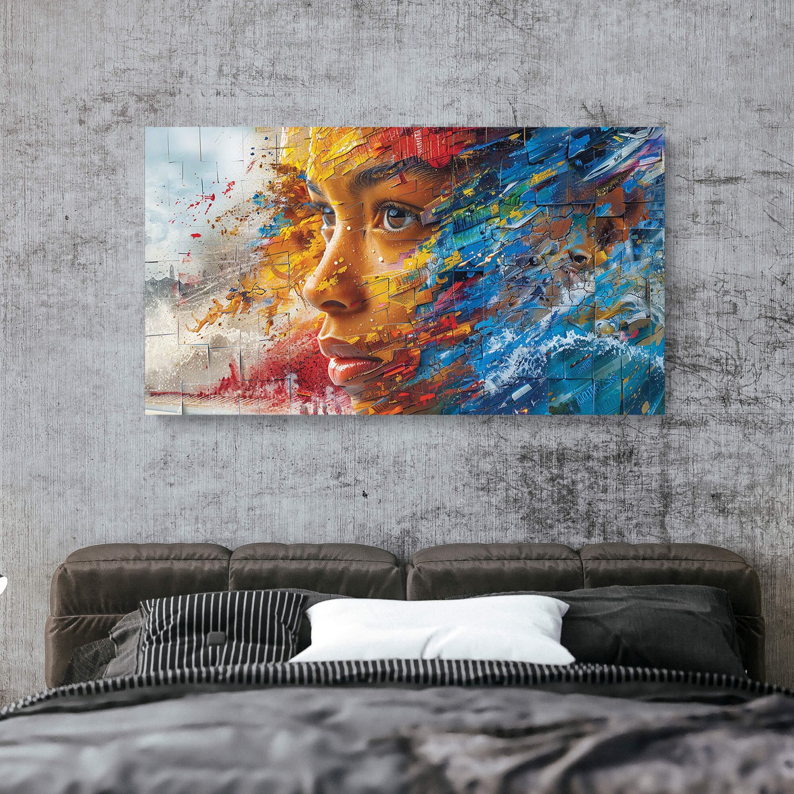 Elevate your space with the vibrant energy and expressive beauty of our Abstract Woman Face Canvas Print. This captivating piece is a mesmerizing fusion of a classic portrait and dynamic artistic abstraction, making it the ultimate Modern Wall Decor Statement Piece for any contemporary home.