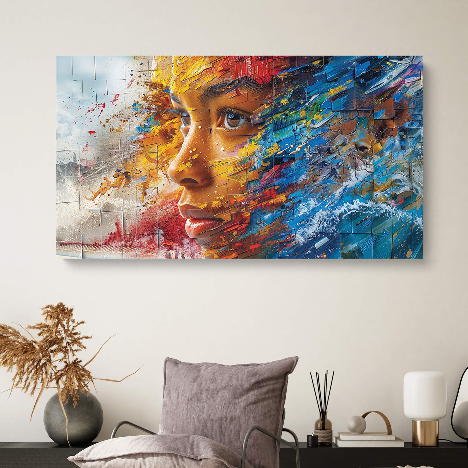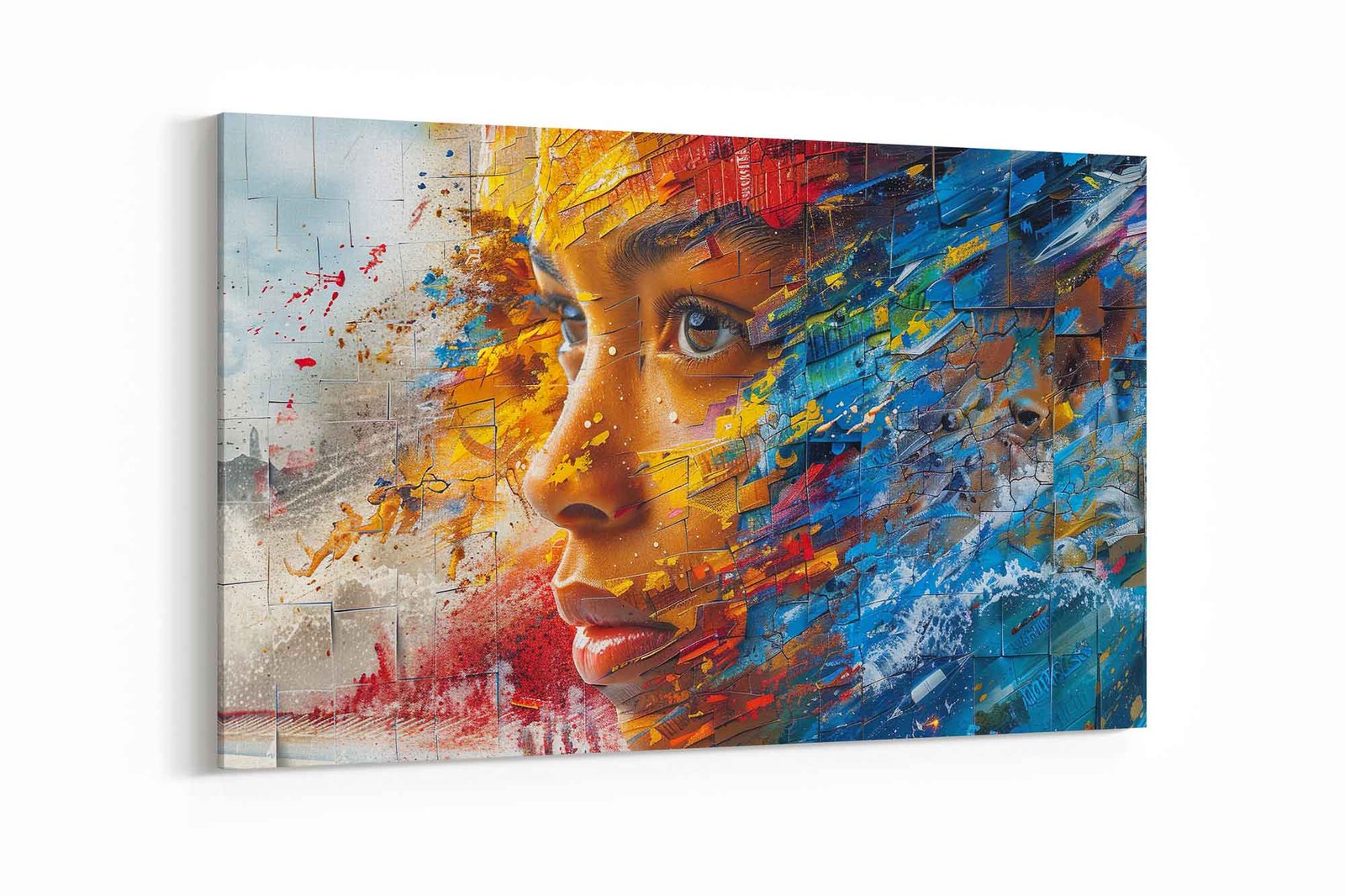 Abstract Woman Face Canvas Print – Colourful Splatter Art Modern Wall Decor