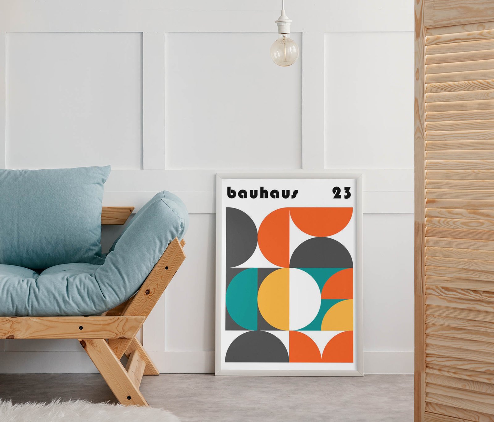 Bauhaus 23 Poster Print | Mid-Century Geometric Abstract Art | Retro Orange and Teal Colour Block Wall Decor for Modern Home