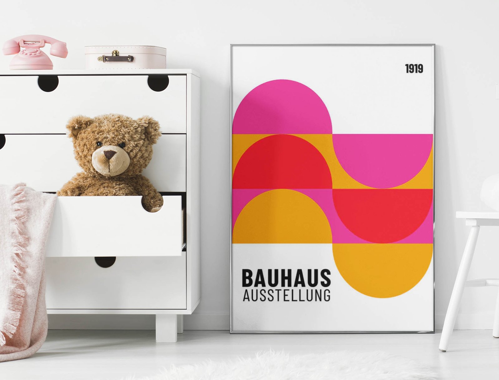 Warm Color Bauhaus 1919 Poster Print | Colourful Geometric Abstract Art | Modernist Wall Art with Warm Colours for Living Room
