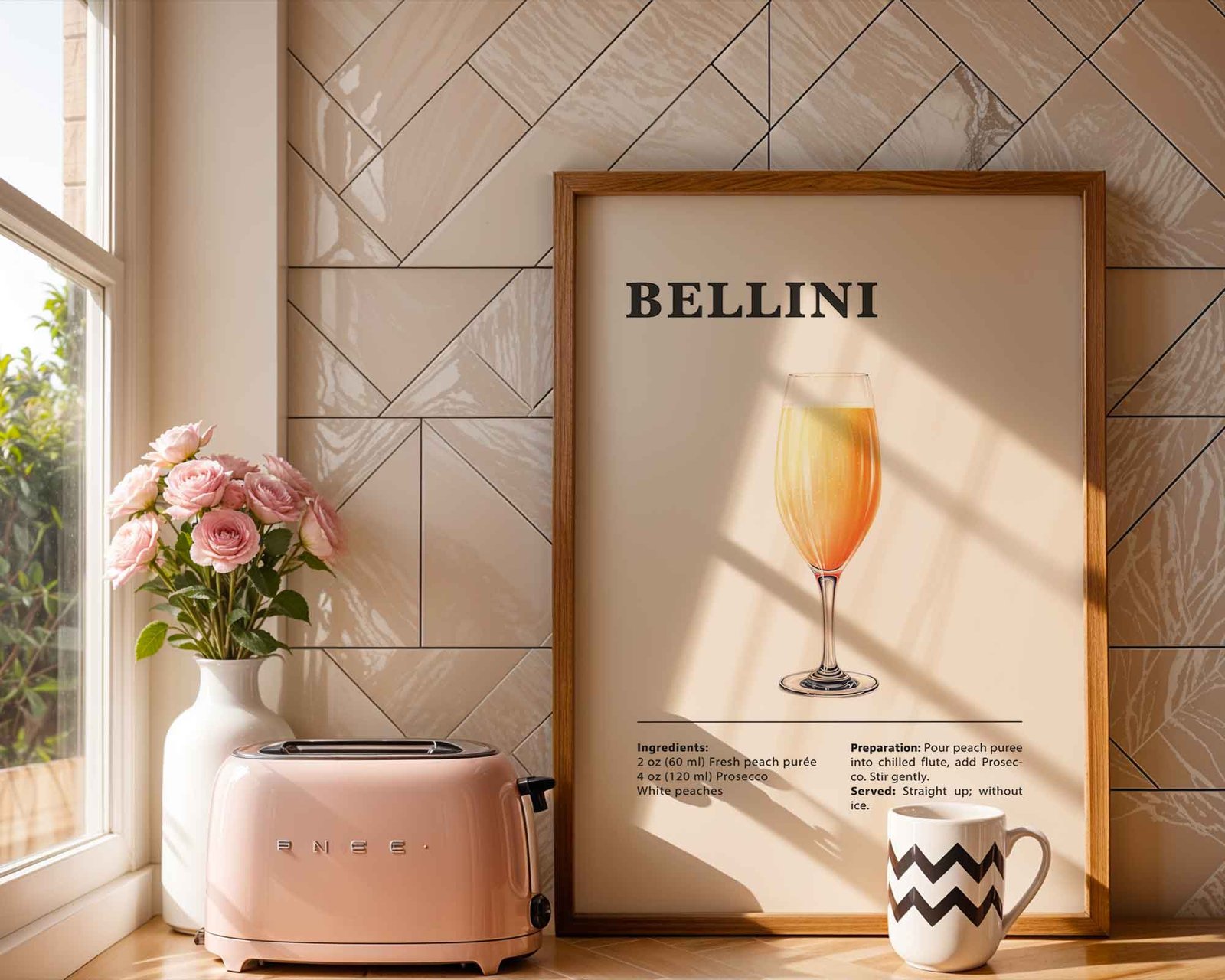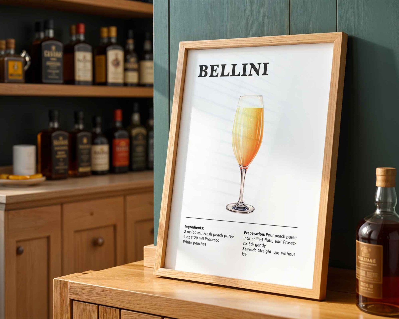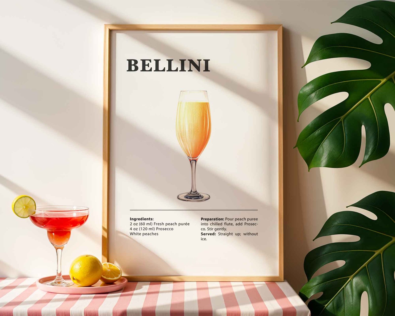 Classic Bellini Recipe Wall Art | Illustrated Cocktail Poster for Home Bar | Kitchen & Bar Cart Decor Poster Print