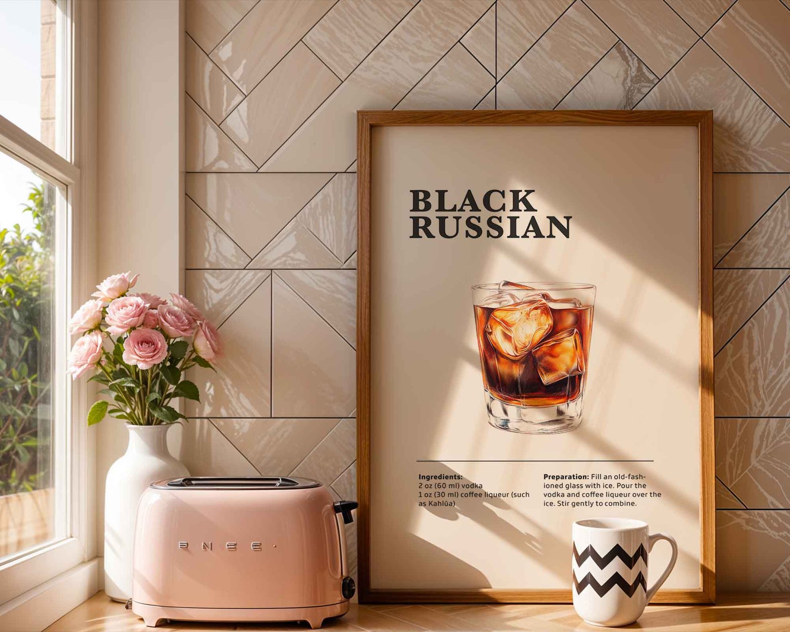Black Russian Cocktail Recipe Poster Print | Minimalist Bar Cart Wall Art | Kitchen & Dining Room Decor | Illustrated Cocktail Guide