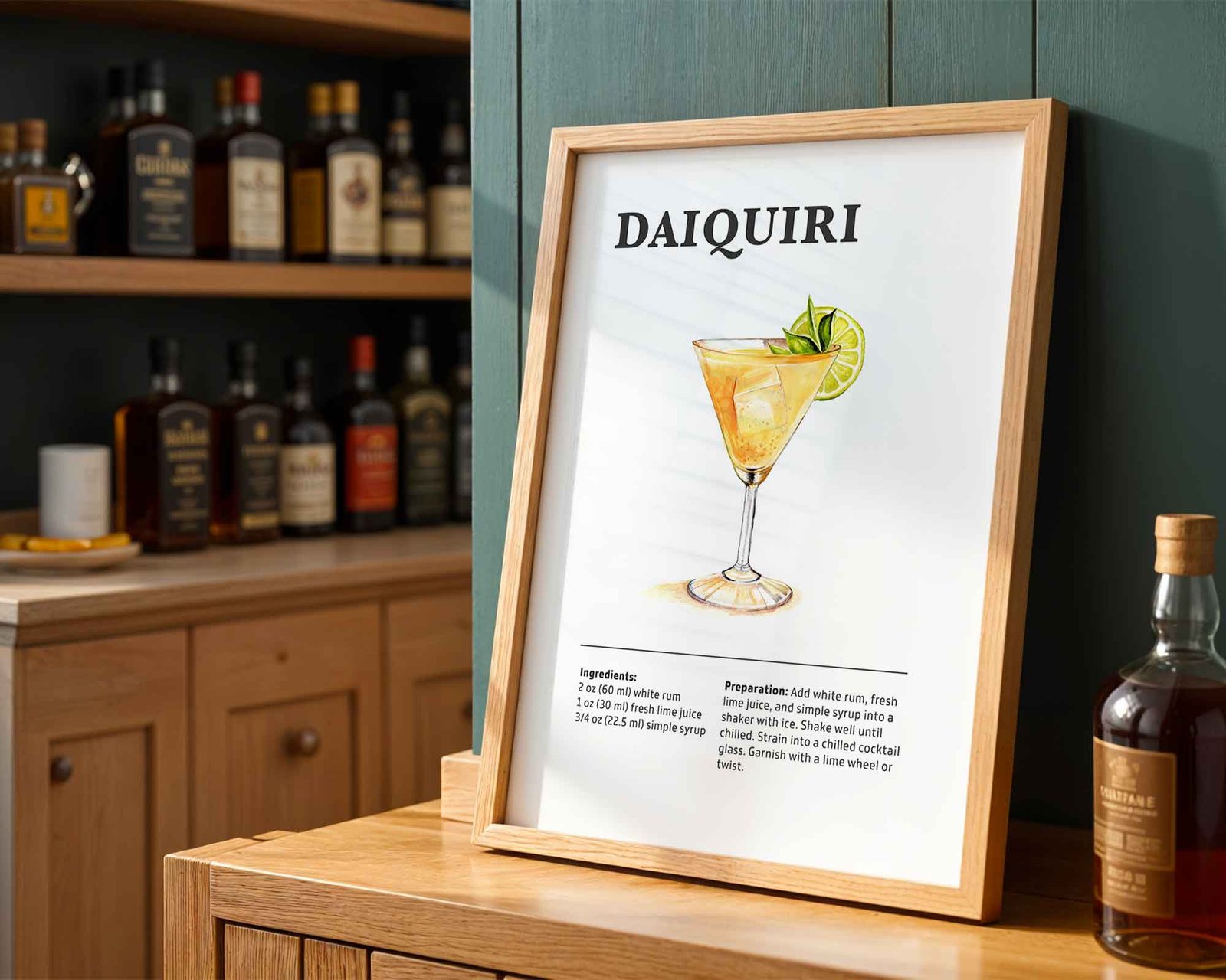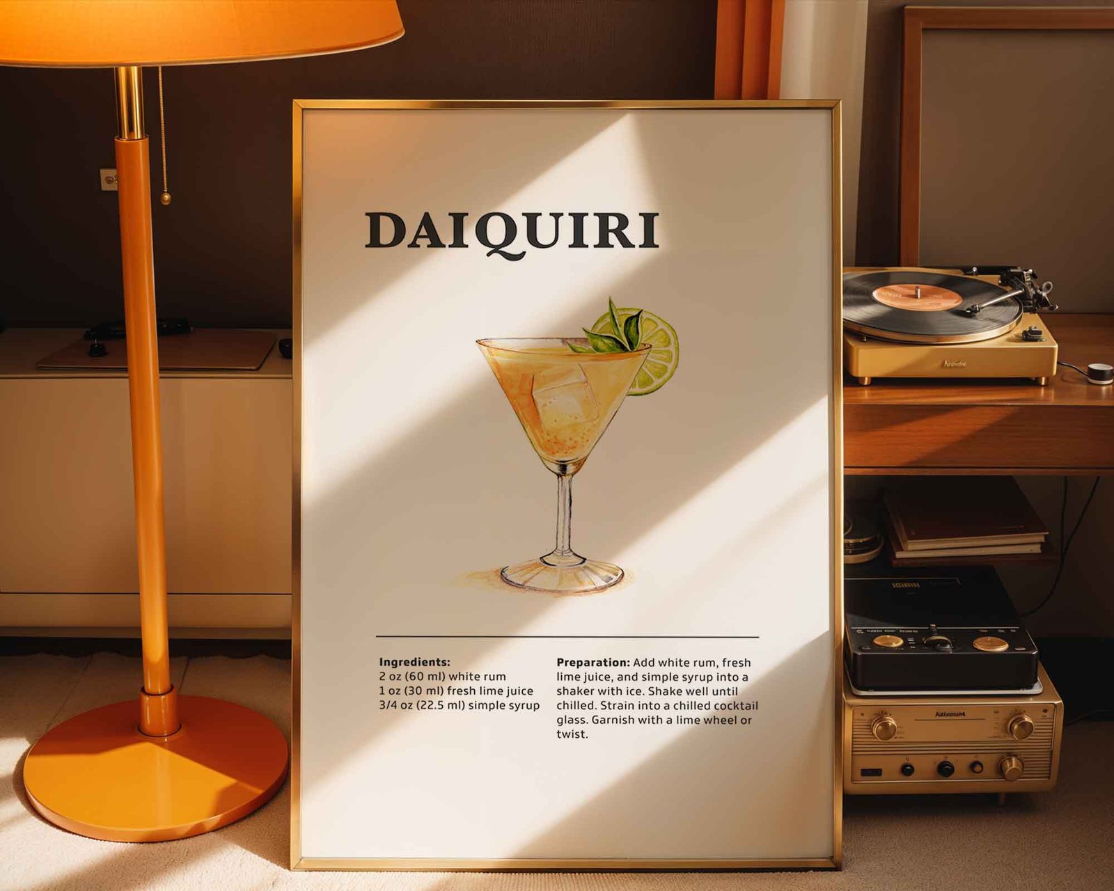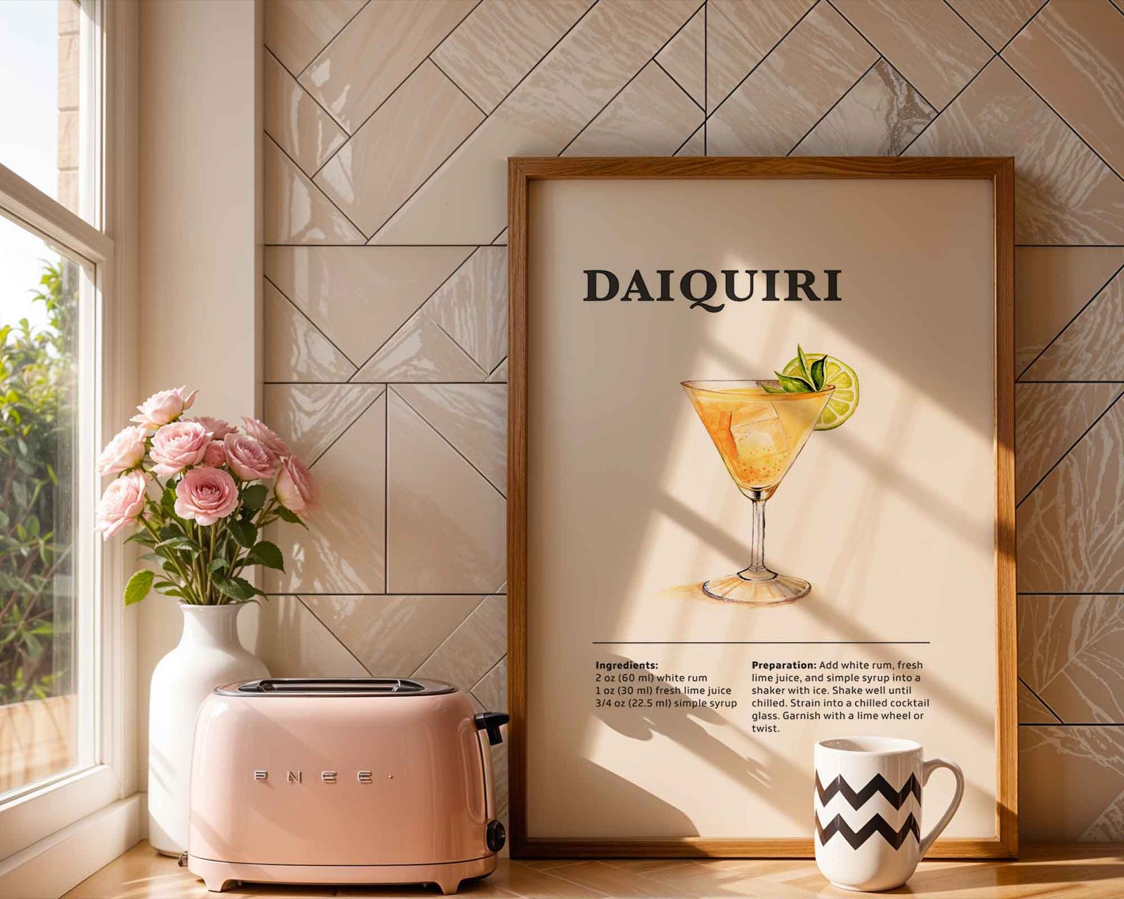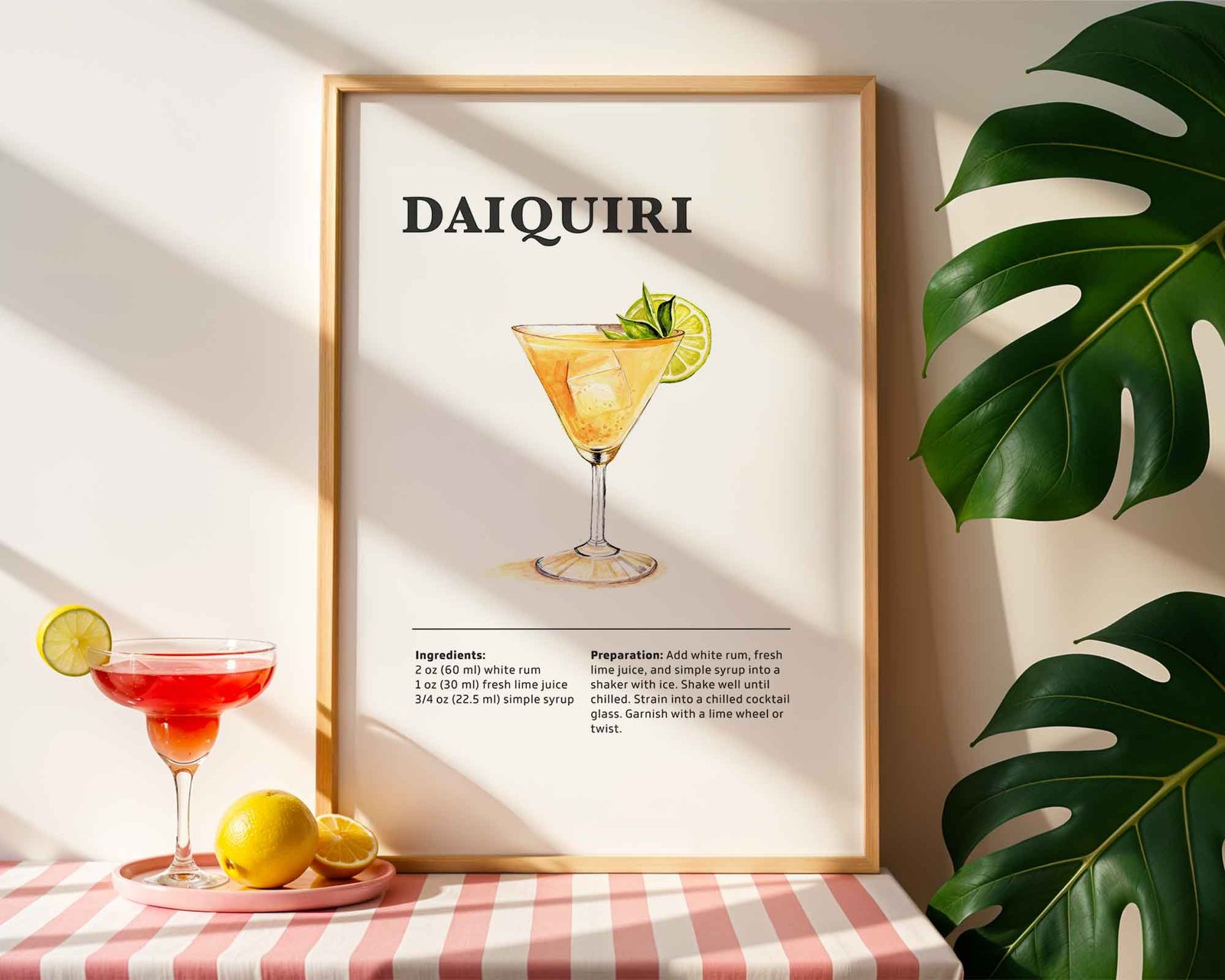 Daiquiri Cocktail Recipe Poster Print | Minimalist Bar Cart Wall Art | Kitchen & Dining Room Decor | Illustrated Cocktail Guide