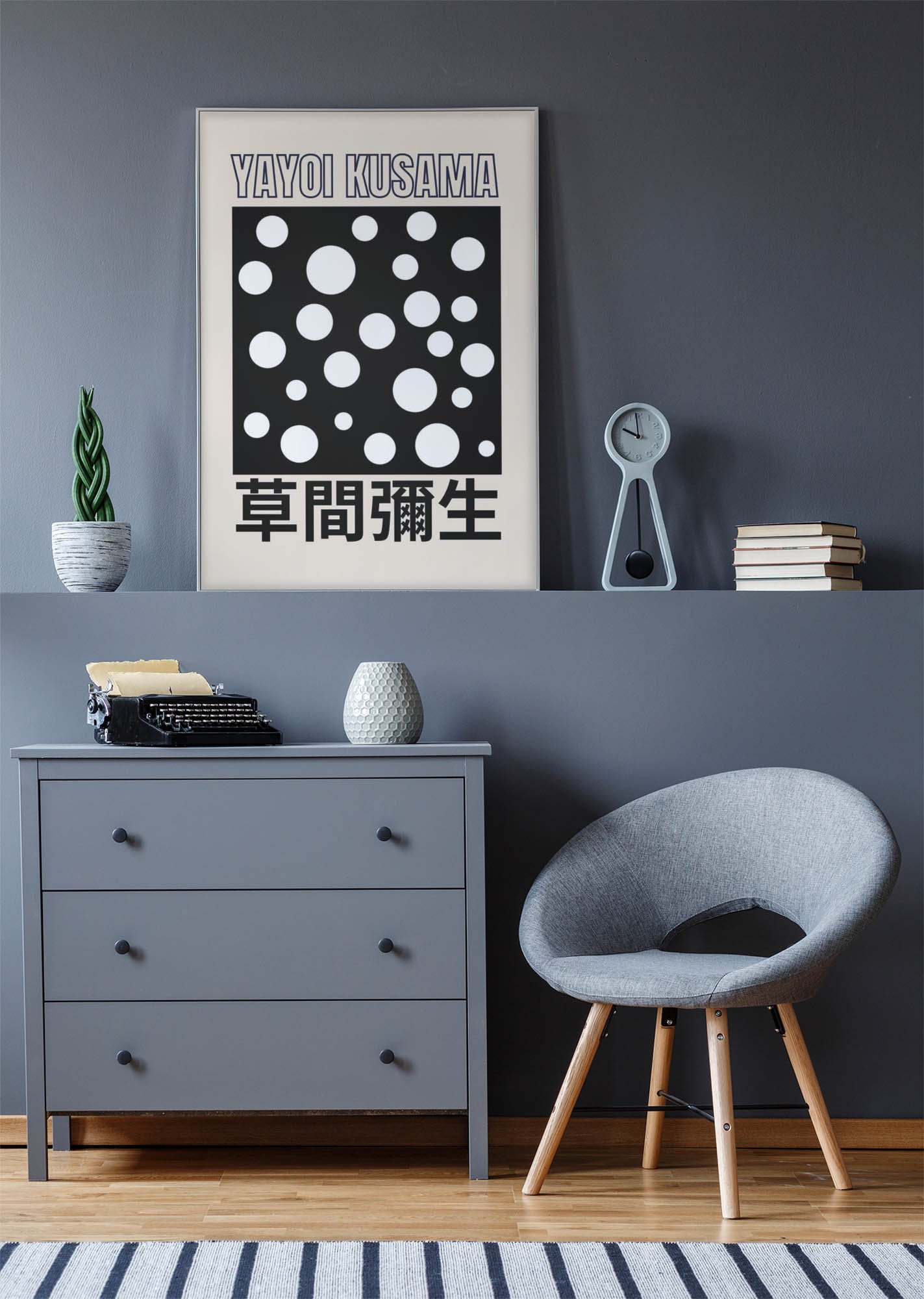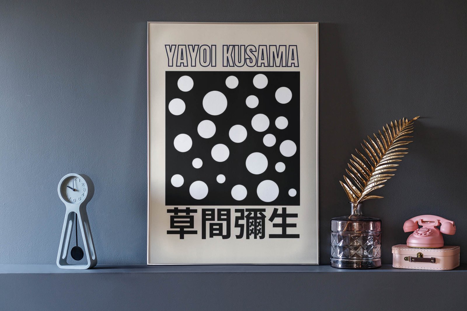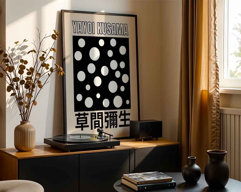 Minimalist Dots Yayoi Kusama Polka Dot Poster Print | Black and White Abstract Dots Wall Art | Japanese Pop Art and Minimalist Posters