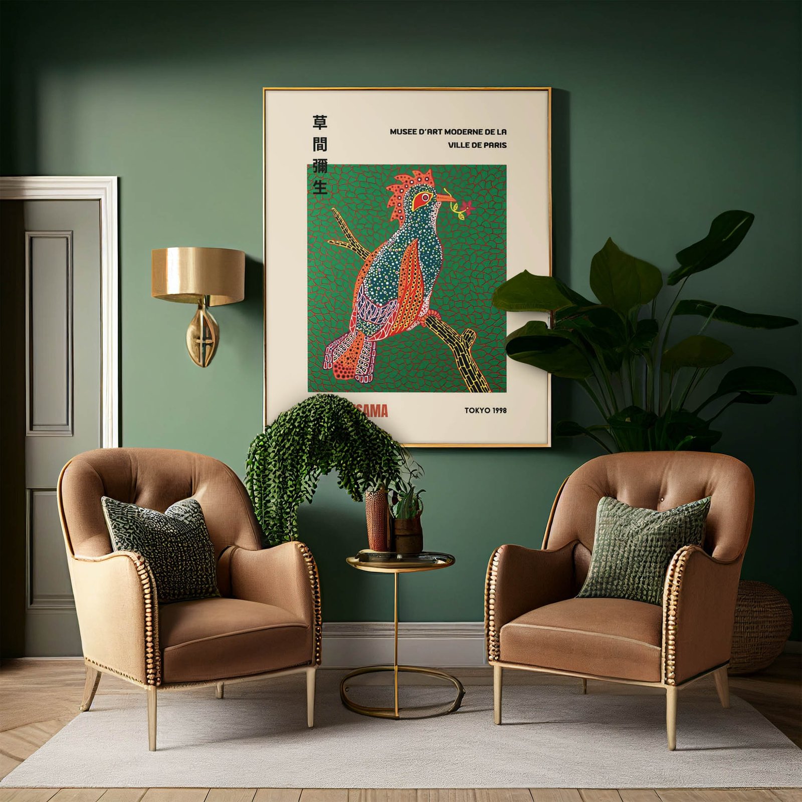 Yayoi Kusama Tokyo & Paris Exhibition Poster Print | Colourful Polka Dot Bird & Infinity Net Wall Art | Contemporary Japanese Pop Art